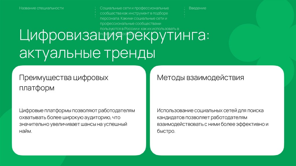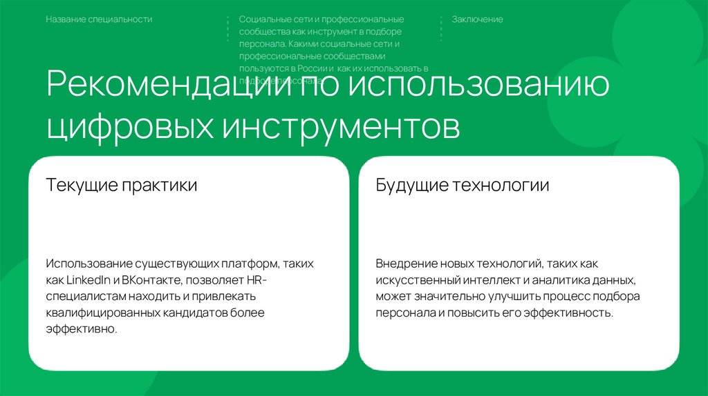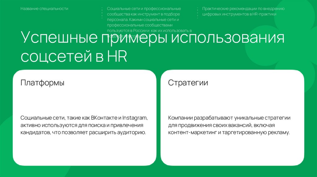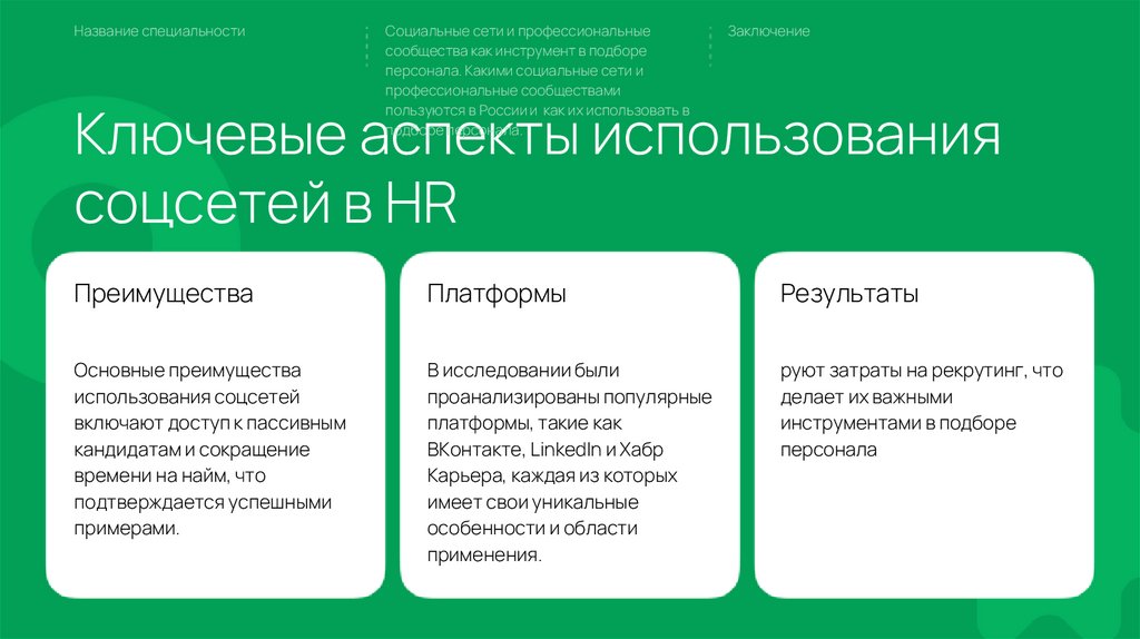 социальных сетей в рекрутинге и разработать