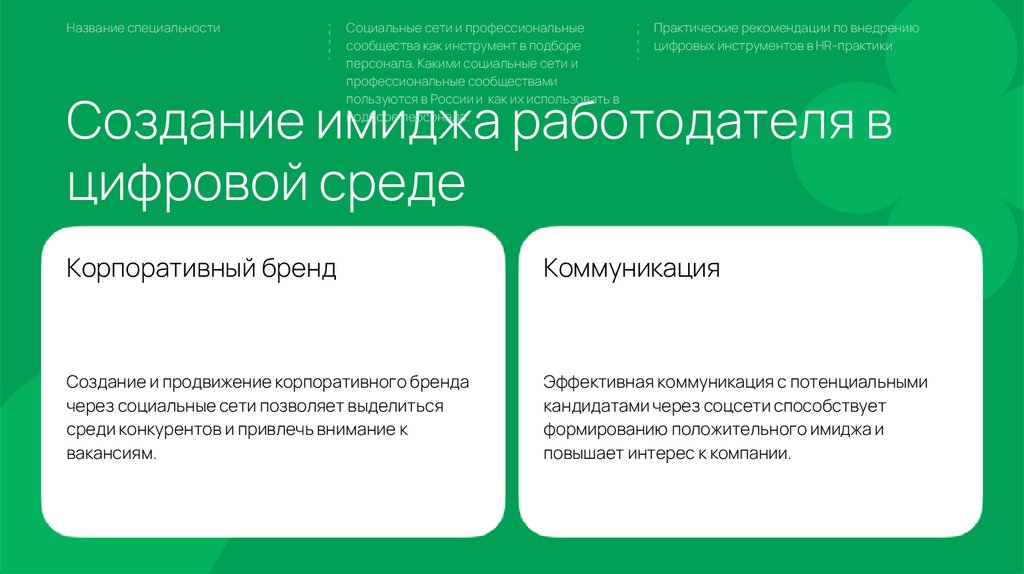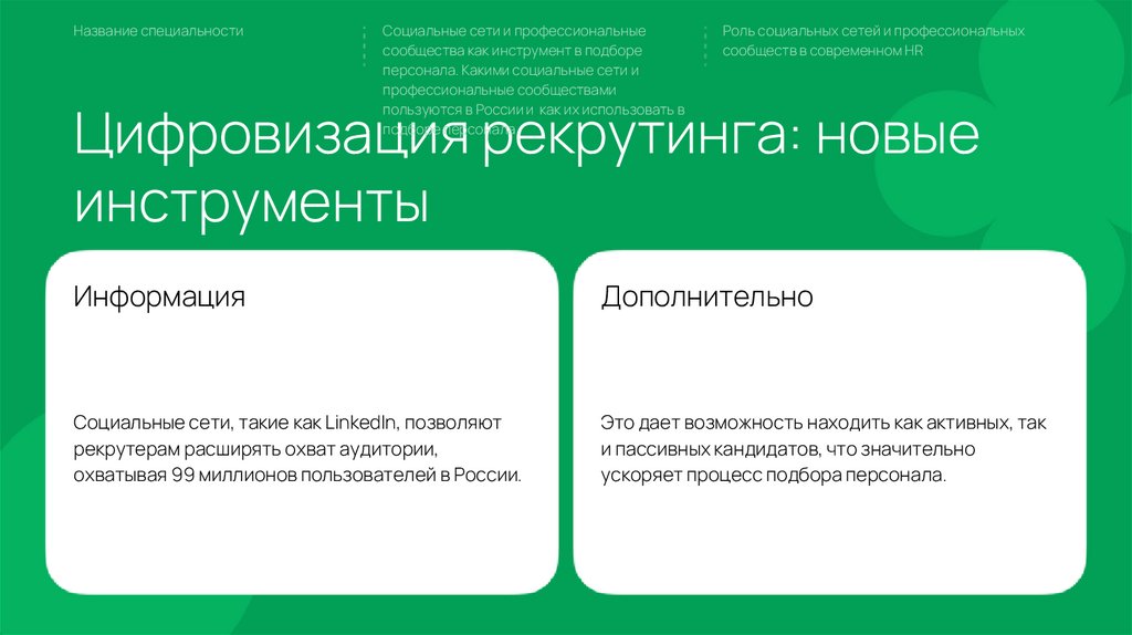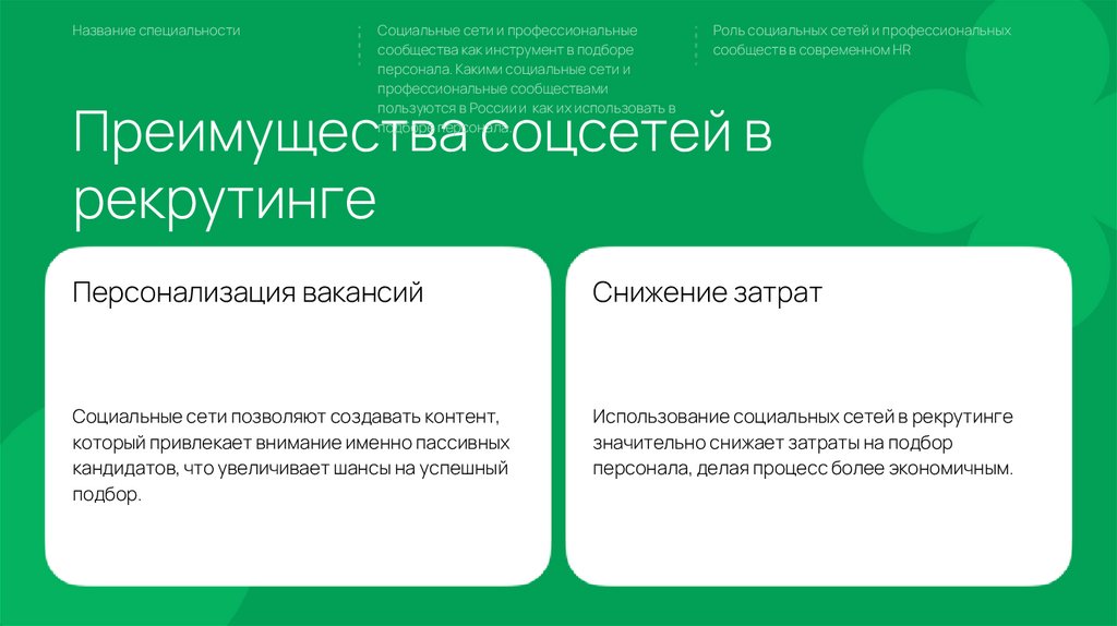 Название специальностиСоциальные сети и профессиональные