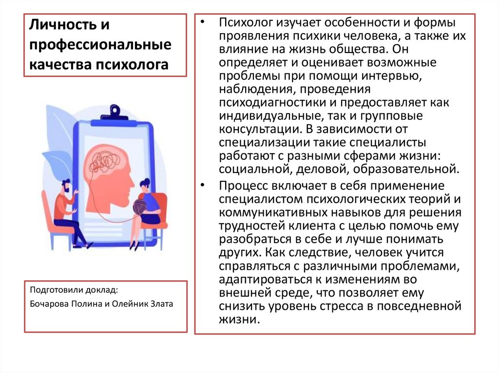 • Личность психолога играет ключевую роль в егопрофессиональной деятельности. Эмпатия, стрессоустойчивость и
