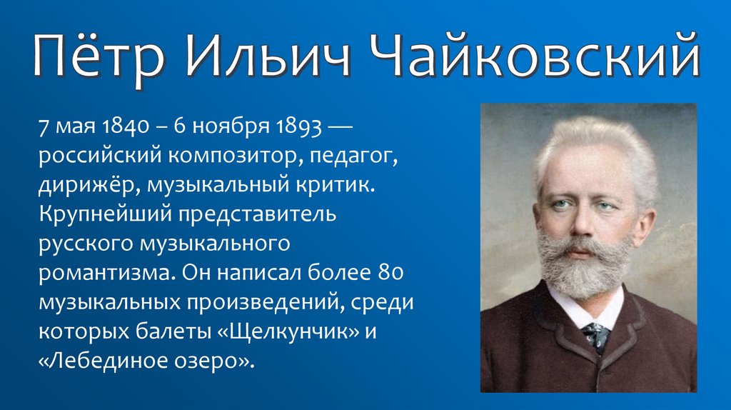 7 мая 1840 – 6 ноября 1893 —российский композитор, педагог,