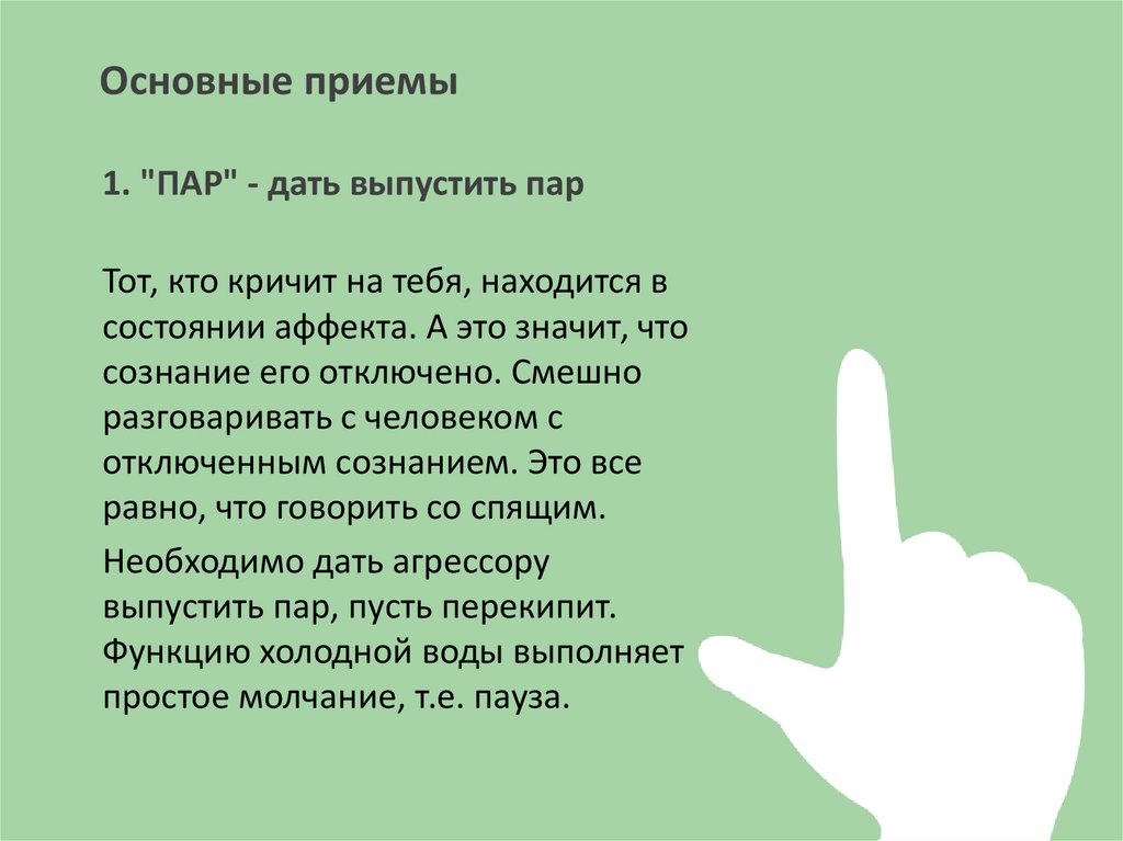 1. Не сопротивляться агрессии партнера, а гасить ее