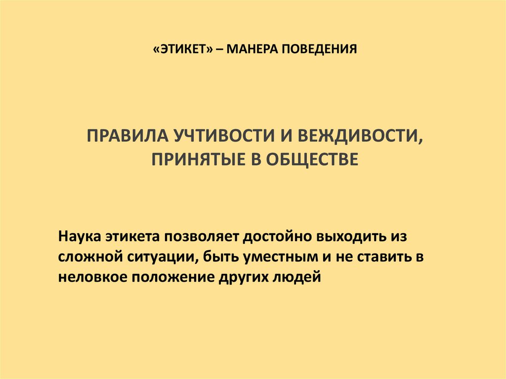 «ЭТИКЕТ» – МАНЕРА ПОВЕДЕНИЯПРАВИЛА УЧТИВОСТИ И ВЕЖДИВОСТИ,
