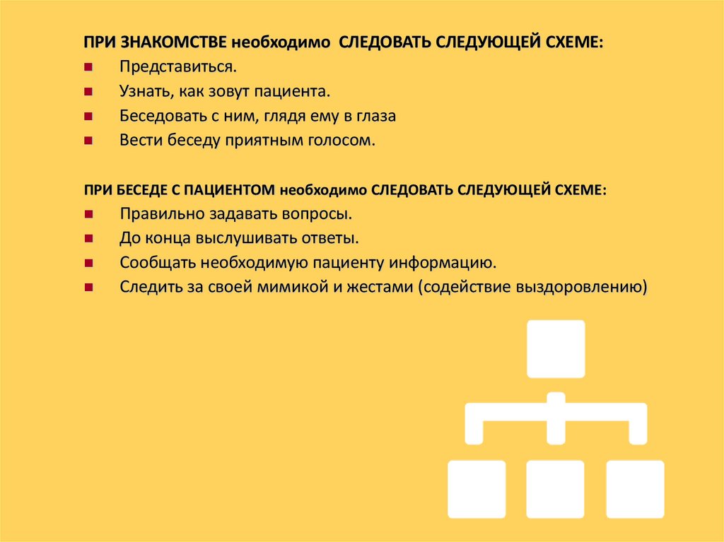 ПРИ БЕСЕДЕ С ПАЦИЕНТОМ необходимо СЛЕДОВАТЬ СЛЕДУЮЩЕЙ СХЕМЕ: