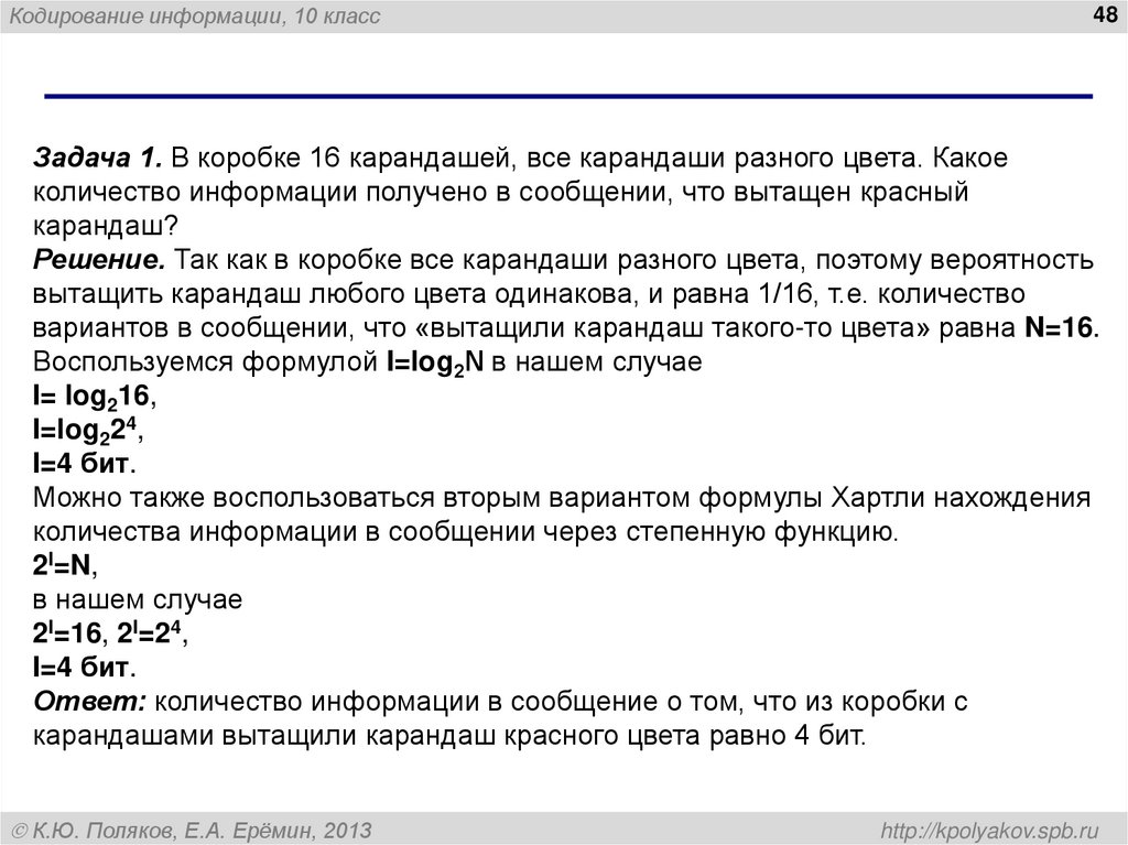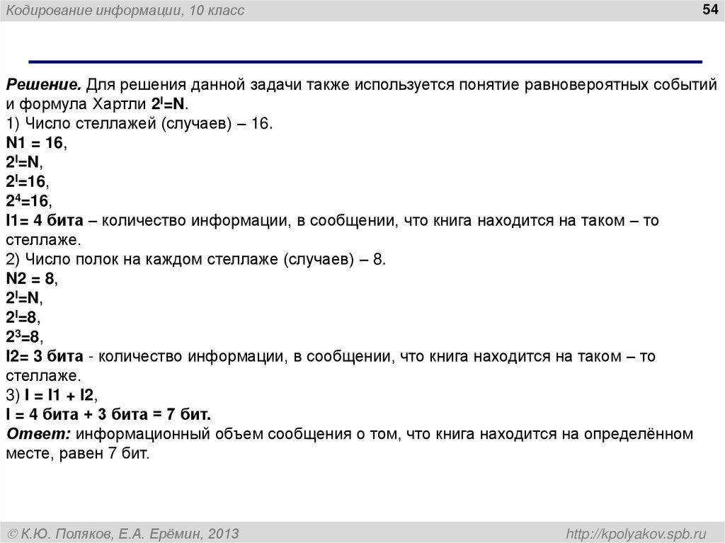 Ответ: информационный объем сообщения о том, что книга находится на определённом