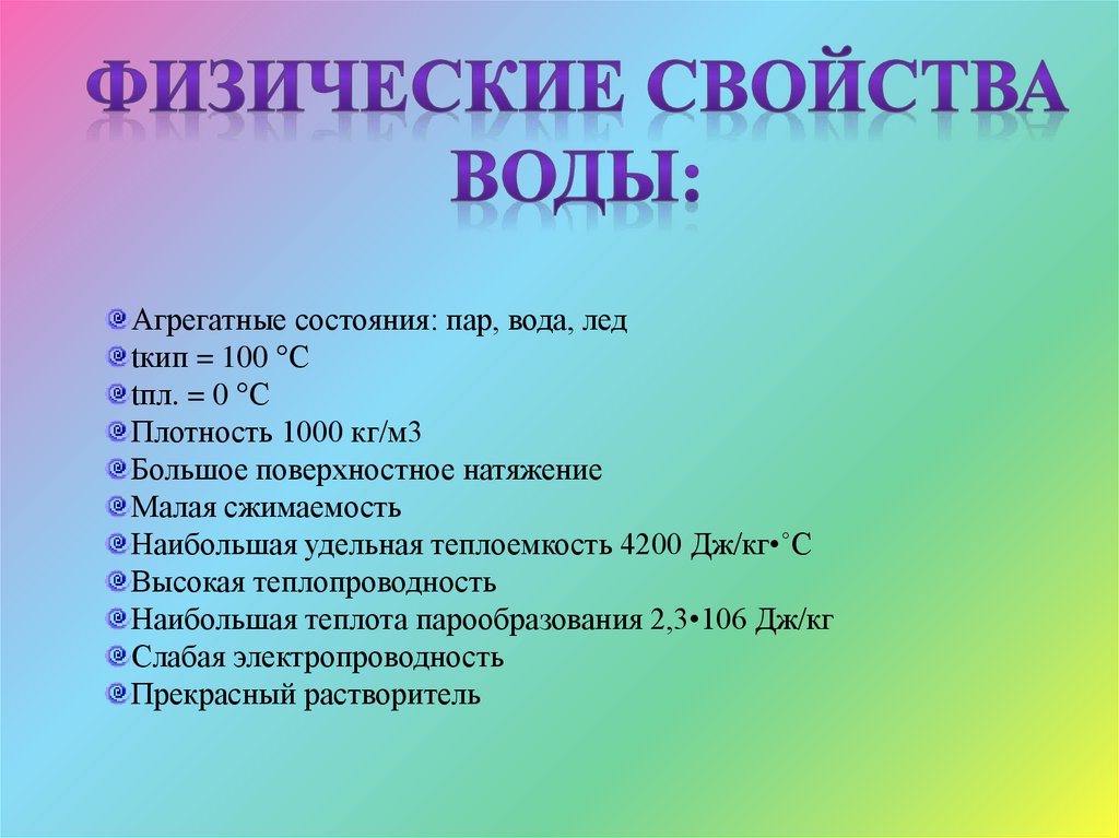 Агрегатные состояния: пар, вода, ледtкип = 100 °С