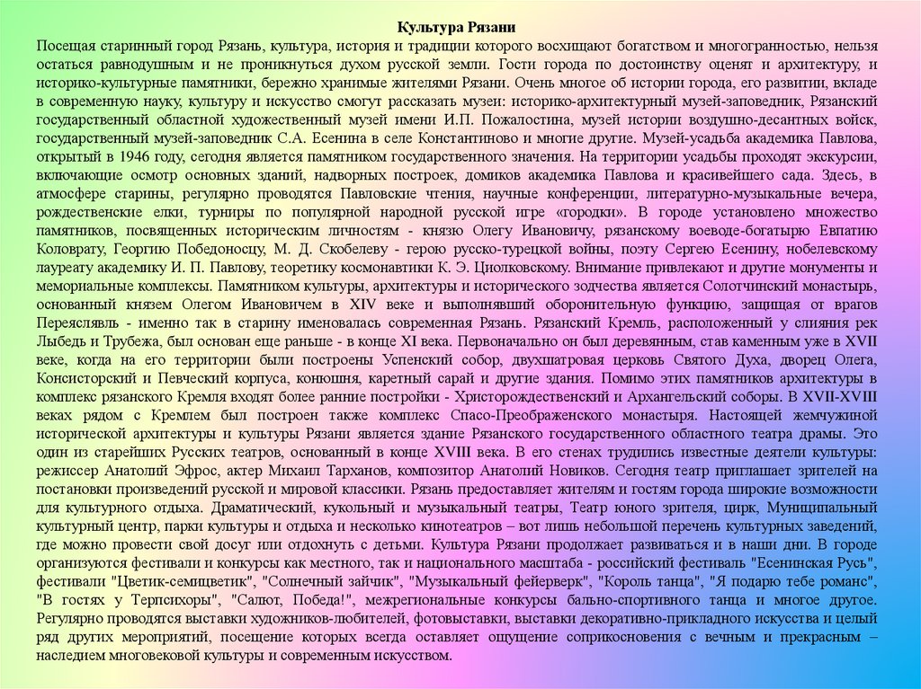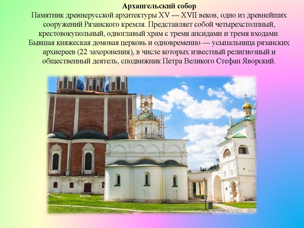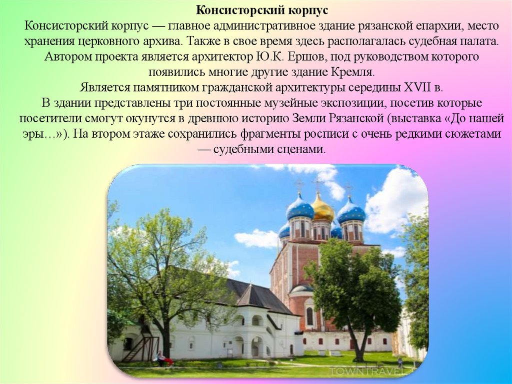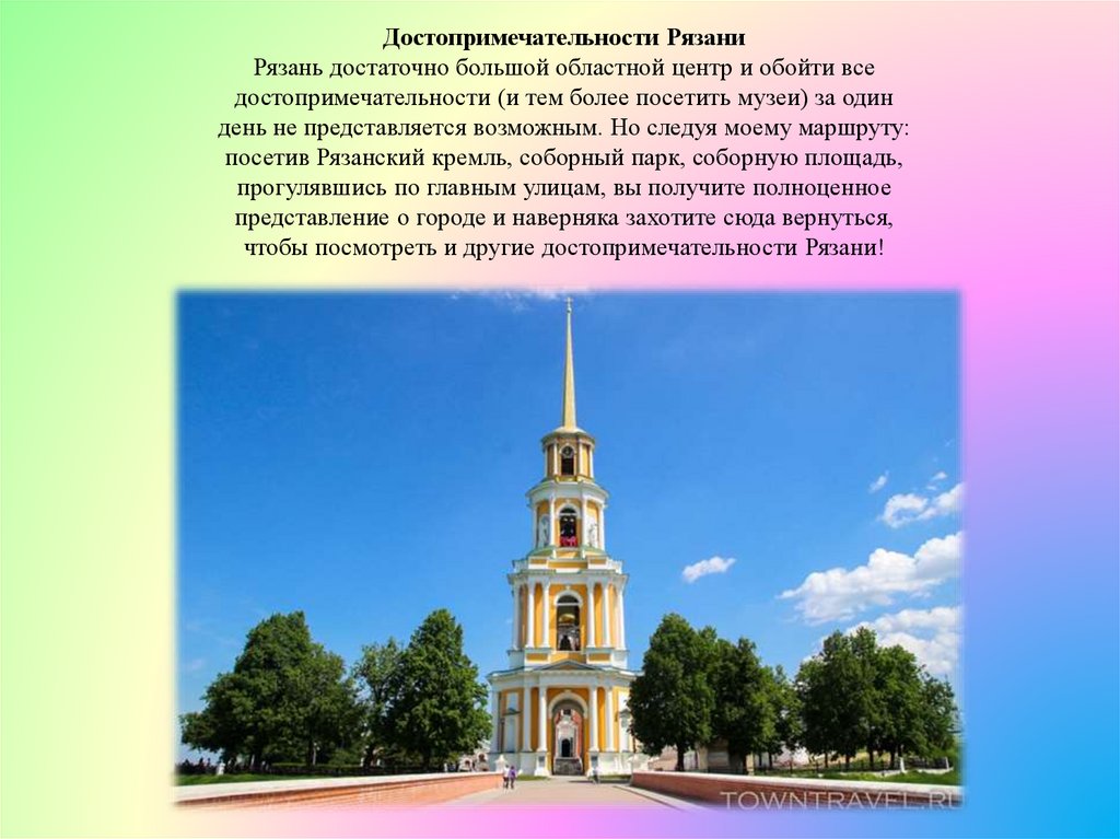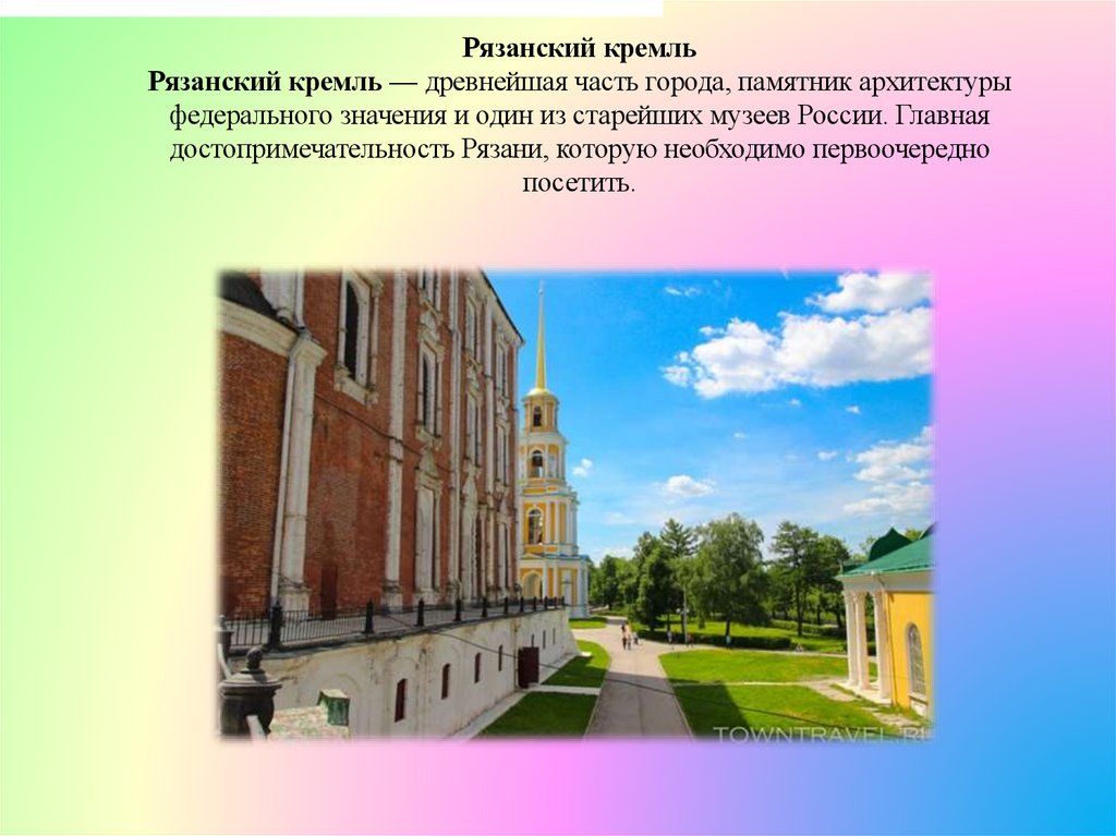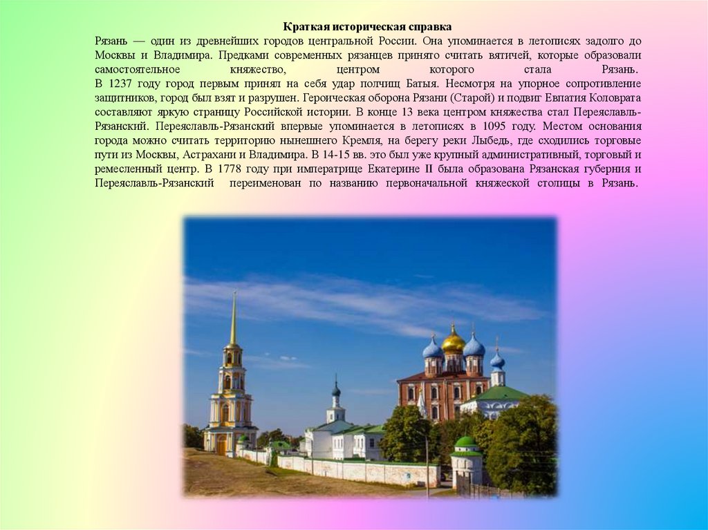 Краткая историческая справкаРязань — один из древнейших городов центральной России. Она упоминается в летописях задолго до