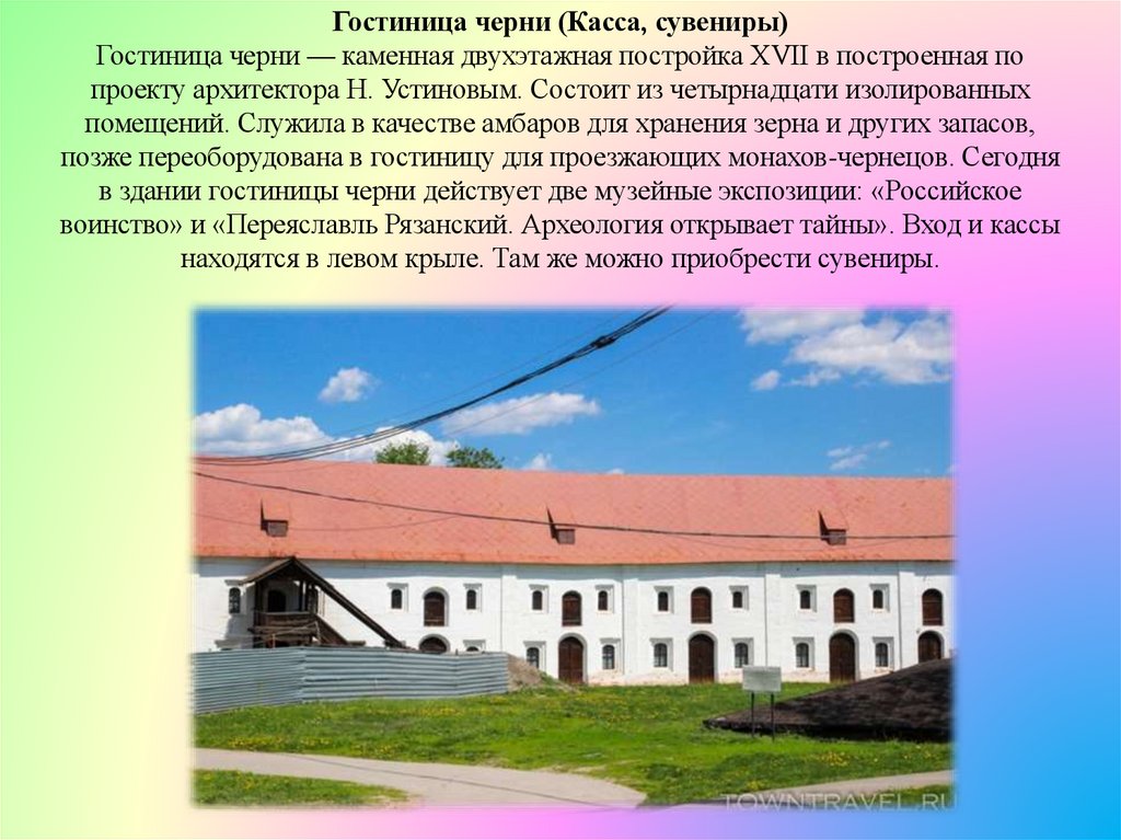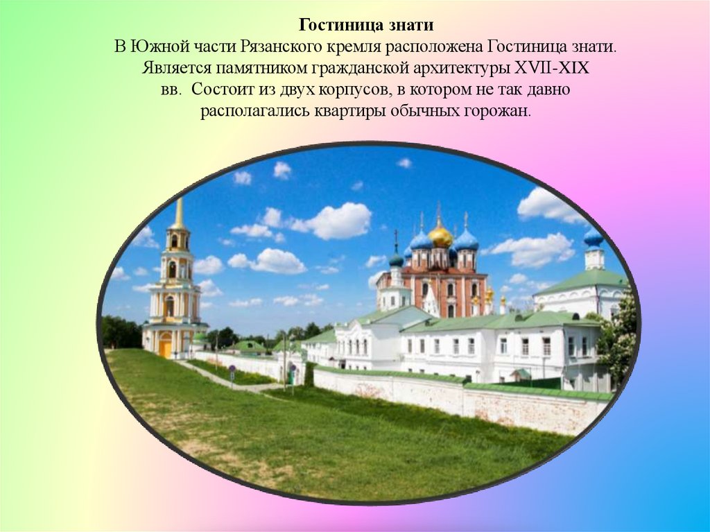 Гостиница знатиВ Южной части Рязанского кремля расположена Гостиница знати.