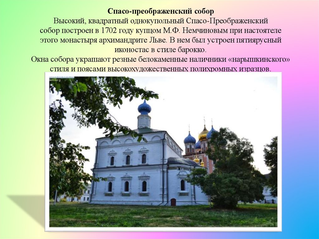 собор построен в 1702 году купцом М.Ф. Немчиновым при настоятеле