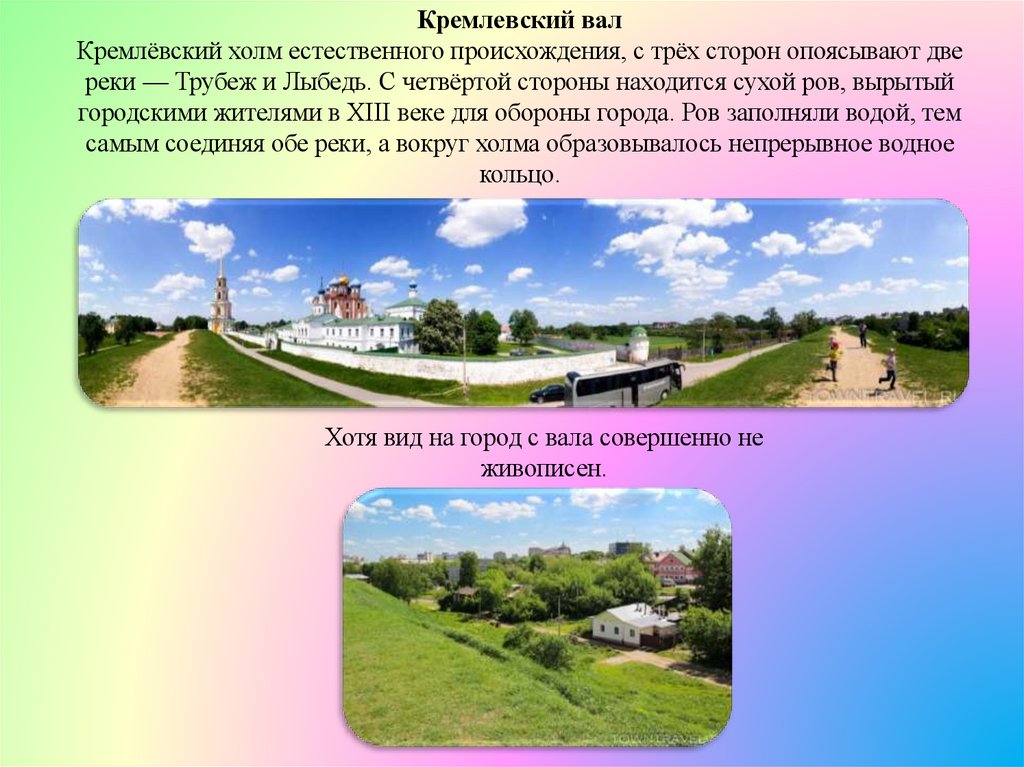 Кремлевский валКремлёвский холм естественного происхождения, с трёх сторон опоясывают две