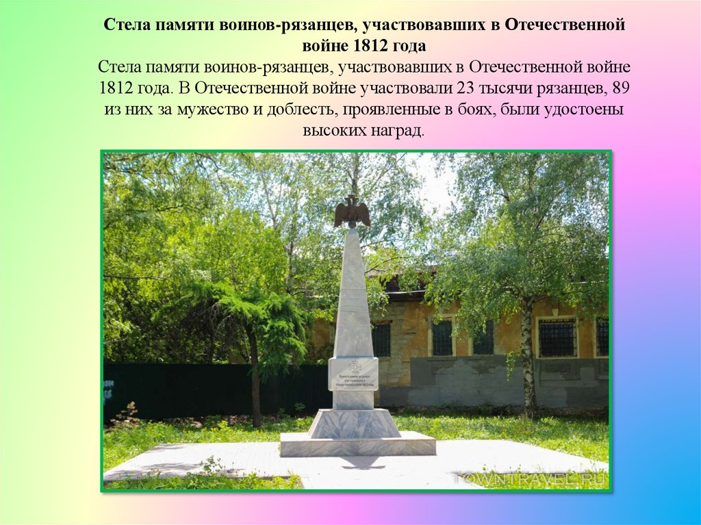 Стела памяти воинов-рязанцев, участвовавших в Отечественнойвойне 1812 года
