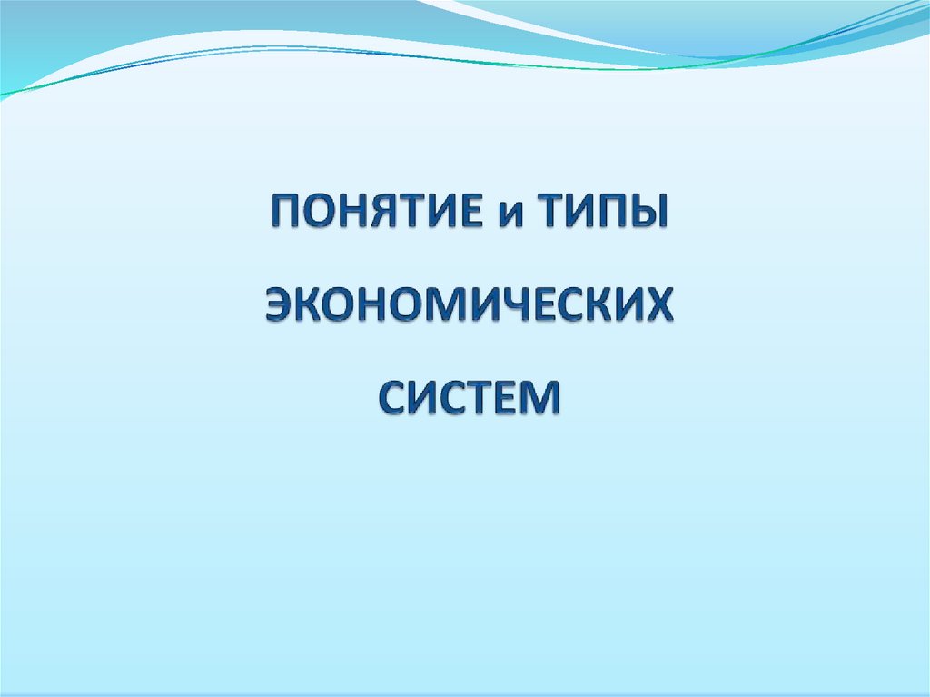 ТИПЫ ЭКОНОМИЧЕСКИХ СИСТЕМ