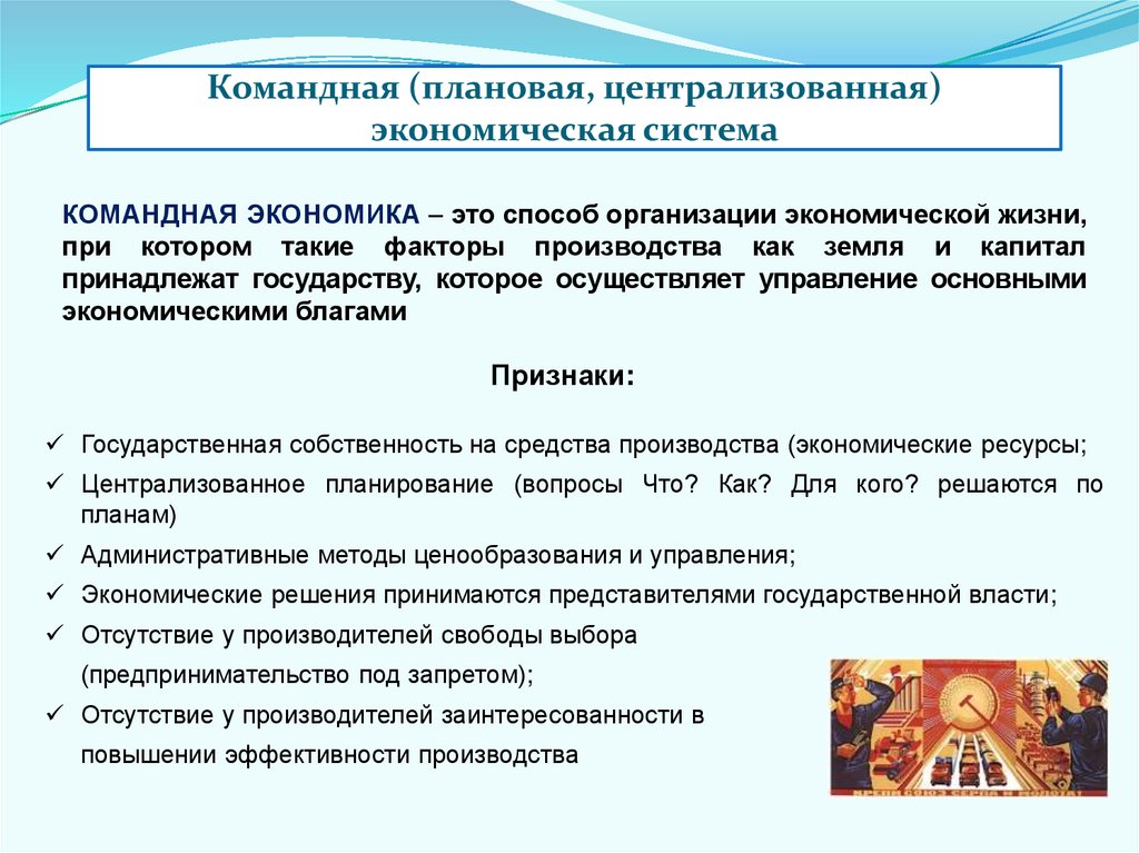 КОМАНДНАЯ ЭКОНОМИКА – это способ организации экономической жизни,