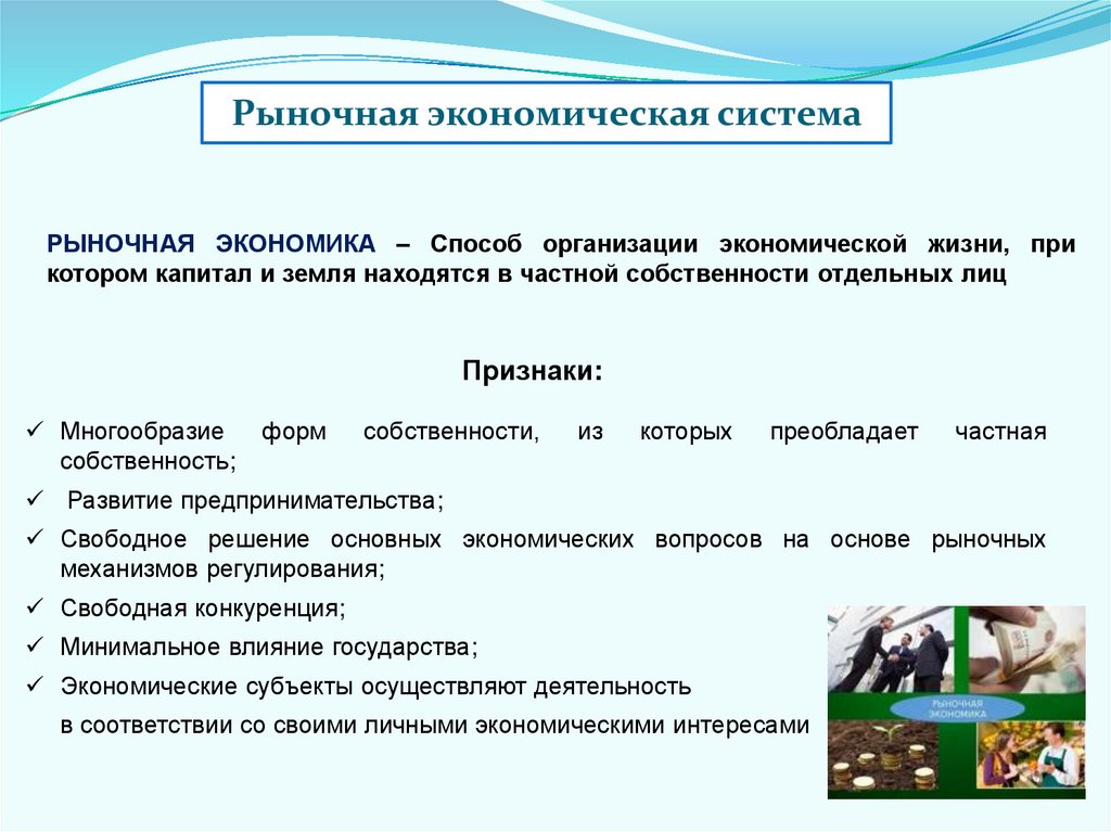 Рыночная экономическая системаРЫНОЧНАЯ ЭКОНОМИКА – Способ организации экономической жизни, при