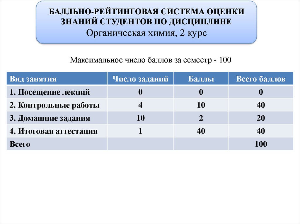 БАЛЛЬНО-РЕЙТИНГОВАЯ СИСТЕМА ОЦЕНКИЗНАНИЙ СТУДЕНТОВ ПО ДИСЦИПЛИНЕ