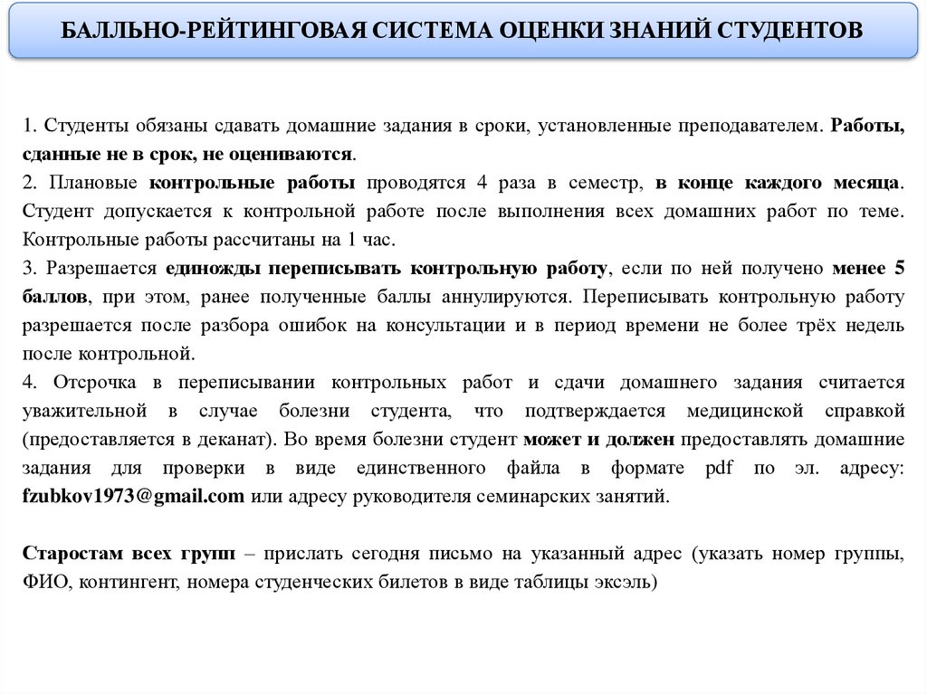 fzubkov1973@gmail.com или адресу руководителя семинарских занятий.