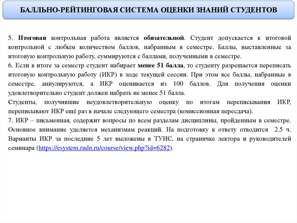 БАЛЛЬНО-РЕЙТИНГОВАЯ СИСТЕМА ОЦЕНКИ ЗНАНИЙ СТУДЕНТОВ5. Итоговая контрольная работа является обязательной. Студент допускается к итоговой