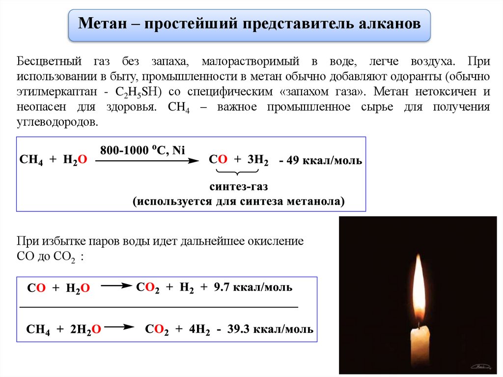 ОкислениеМолекулярный кислород в обычных условиях с алканами не реагирует. В