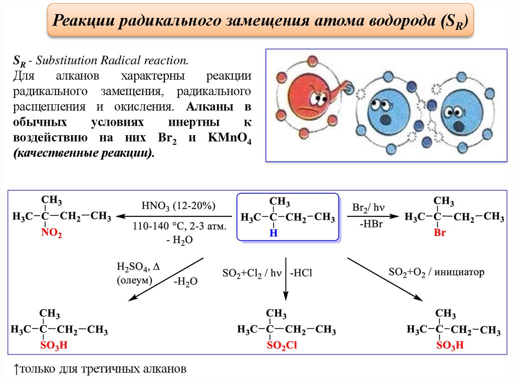 направлениям, но преимущественно в этом участвует третичный атом углерода.