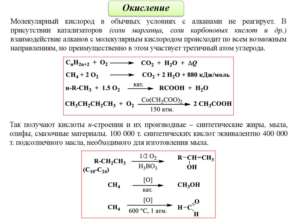 взаимодействие алканов с молекулярным кислородом происходит по всем возможным
