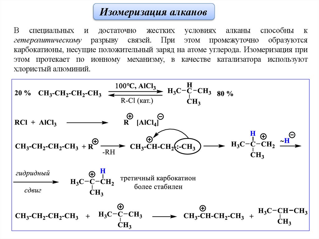 Изомеризация алкановВ специальных и достаточно жестких условиях алканы способны к