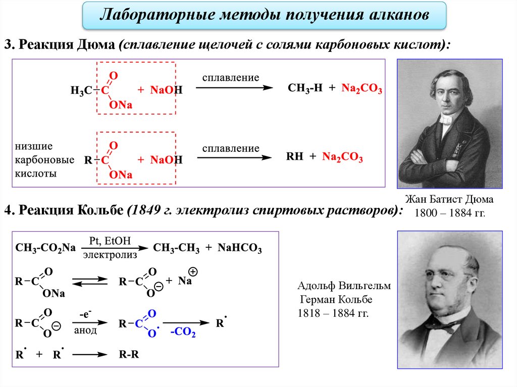 Лабораторные методы получения алканов3. Реакция Дюма (сплавление щелочей с солями карбоновых кислот):