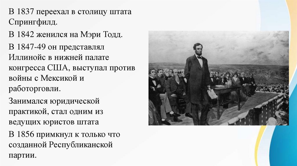 Президентсво ЛинкольнаЛинкольн несколько раз выдвигал свою кандидатуру на высокий пост,