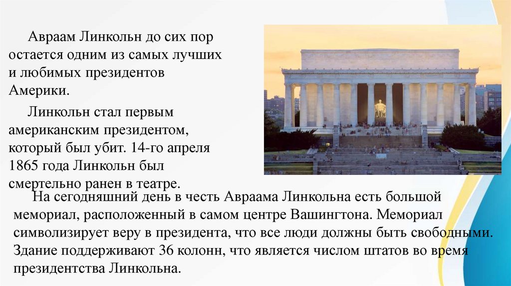 На сегодняшний день в честь Авраама Линкольна есть большой