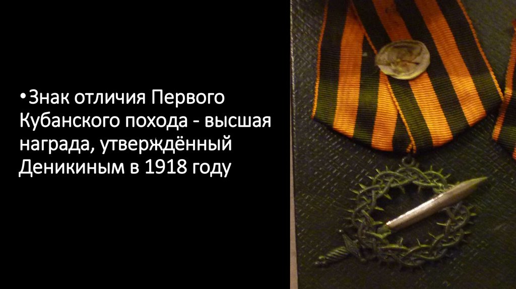 • 21 сентября (4 октября) 1918 года приказом командующего Добровольческой армией генераллейтенанта А. И. Деникина в память о походе был учреждён «Знак отличия Первого Кубанского