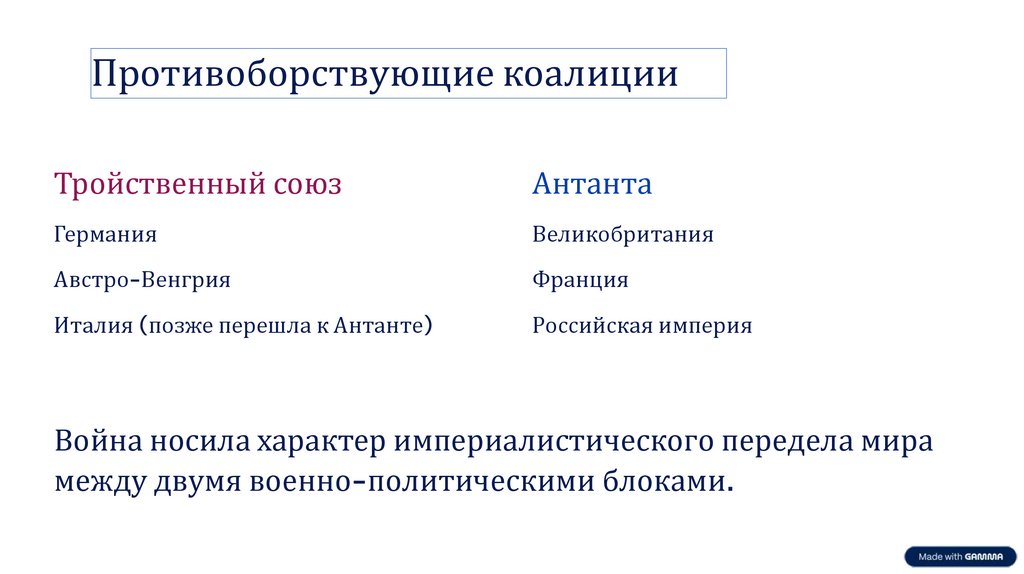 Противоборствующие коалицииТройственный союз
