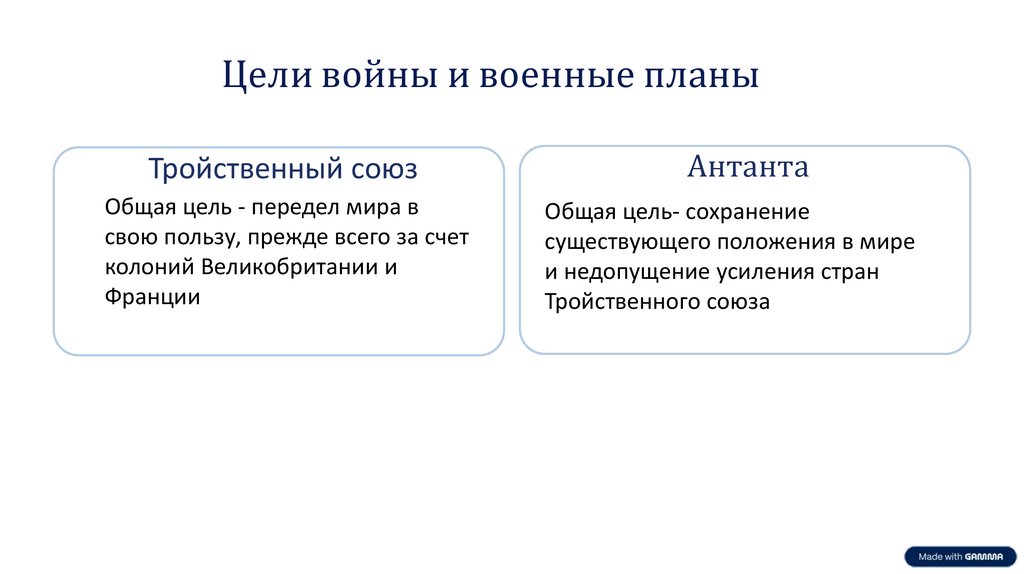 Цели войны и военные планыТройственный союз