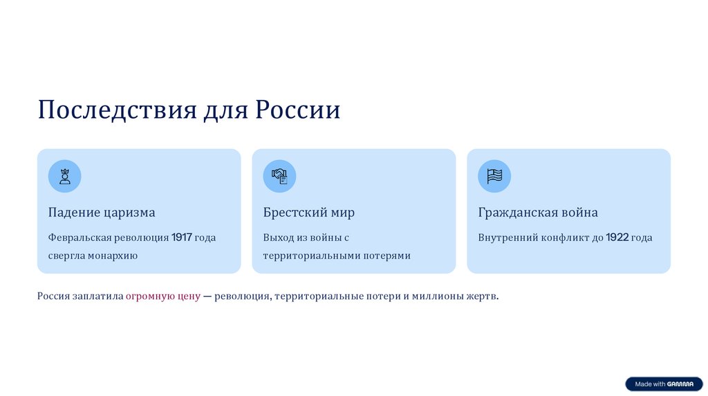 Россия заплатила огромную цену — революция, территориальные потери и миллионы жертв.