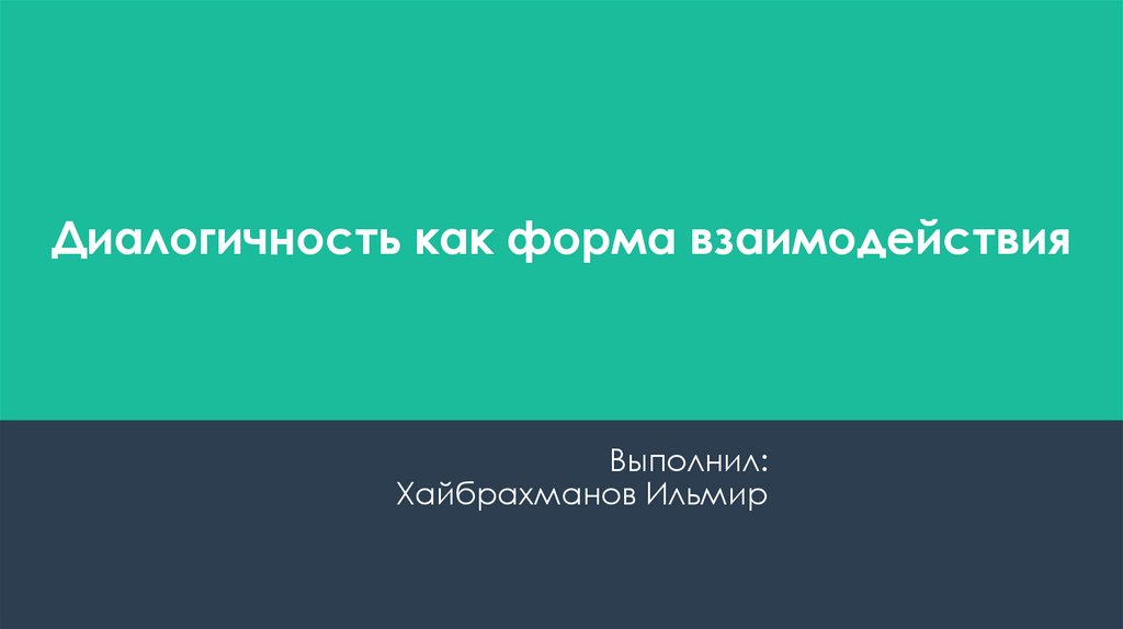 Диалогичность как форма взаимодействияВыполнил: