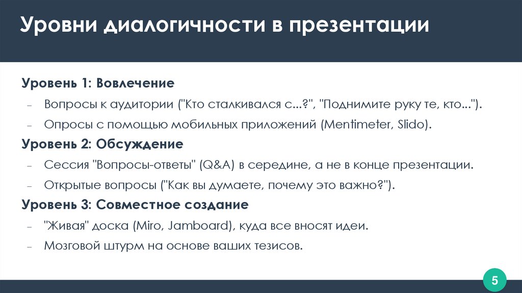 Уровни диалогичности в презентацииУровень 1: Вовлечение
