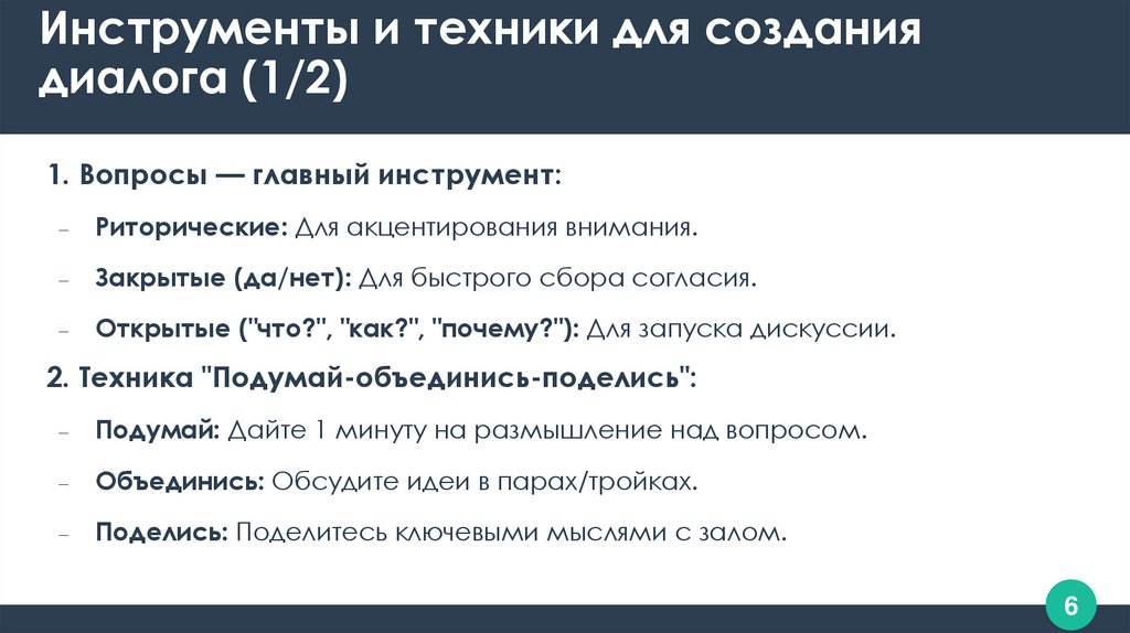 Инструменты и техники для созданиядиалога (1/2)