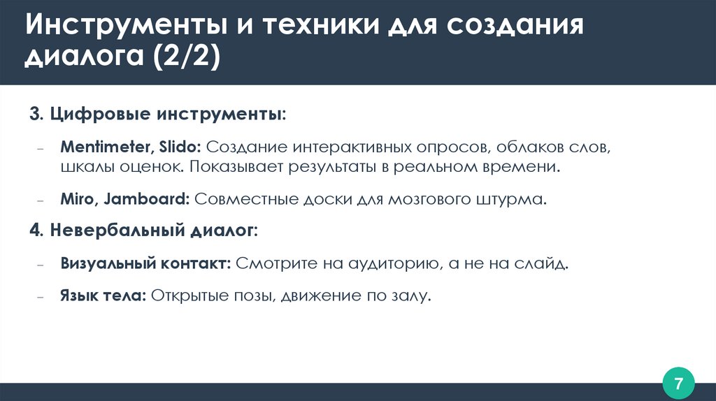 Инструменты и техники для созданиядиалога (2/2)