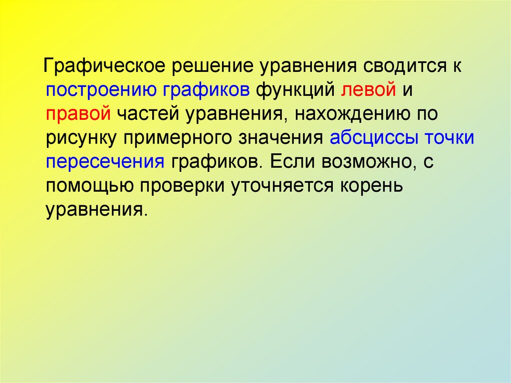 Графическое решение уравнения сводится кпостроению графиков функций левой и