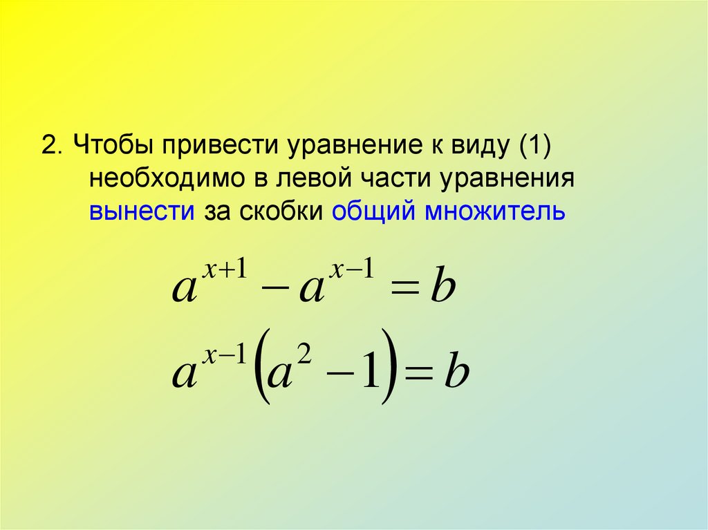 2. Показательное уравнение – это уравнение, в котором неизвестное содержится в показателе степени.