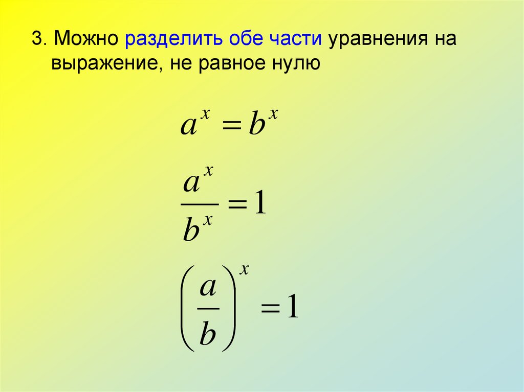 3. Можно разделить обе части уравнения навыражение, не равное нулю