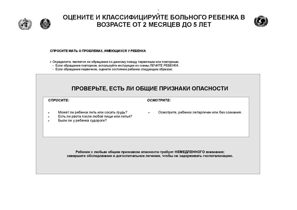 Помните о необходимости госпитализации ребенка с любым общим признаком