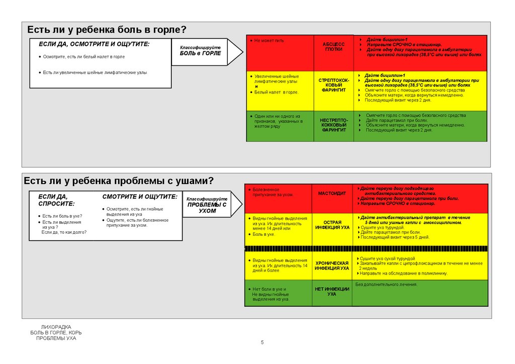 Есть ли у ребенка боли в горле? ............................ 5