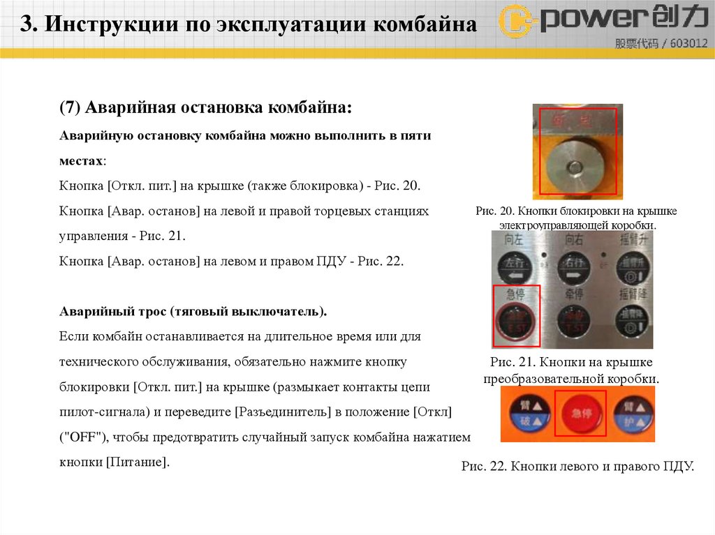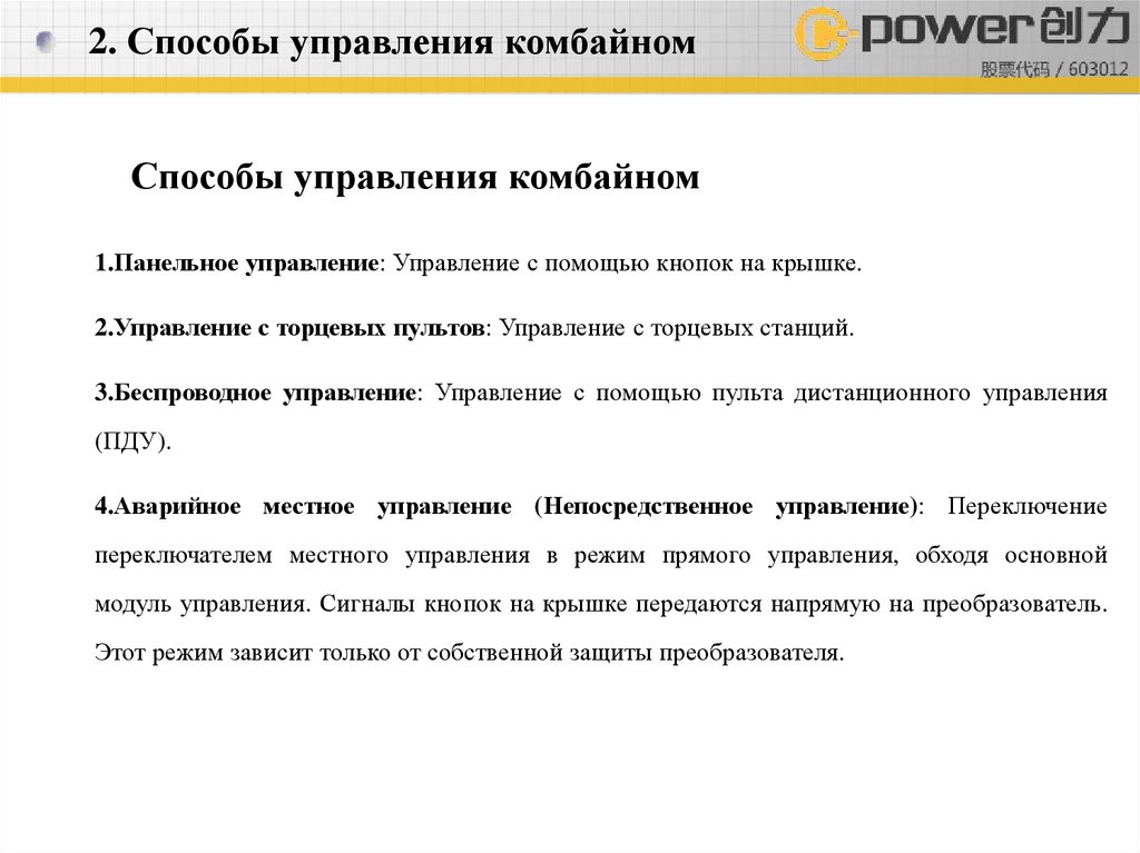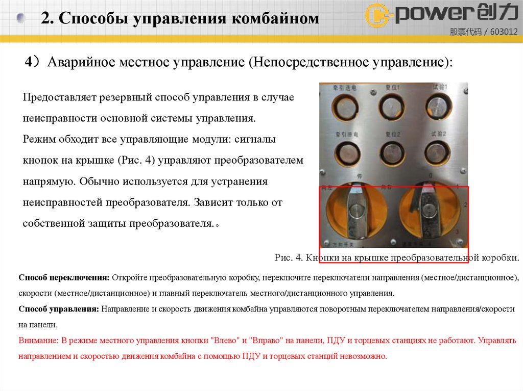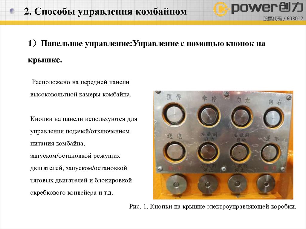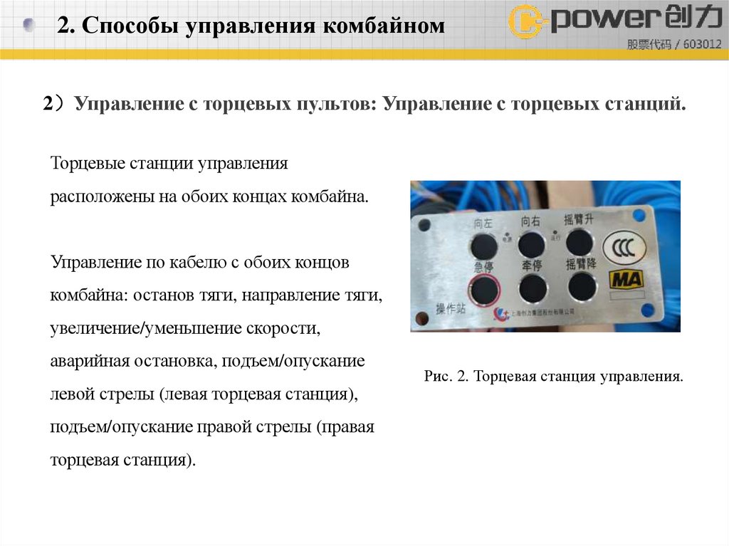 2. Способы управления комбайном2 Управление с торцевых пультов: Управление с торцевых станций.