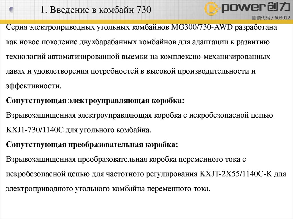 1. Введение в комбайн 730Серия электроприводных угольных комбайнов MG300/730-AWD разработана