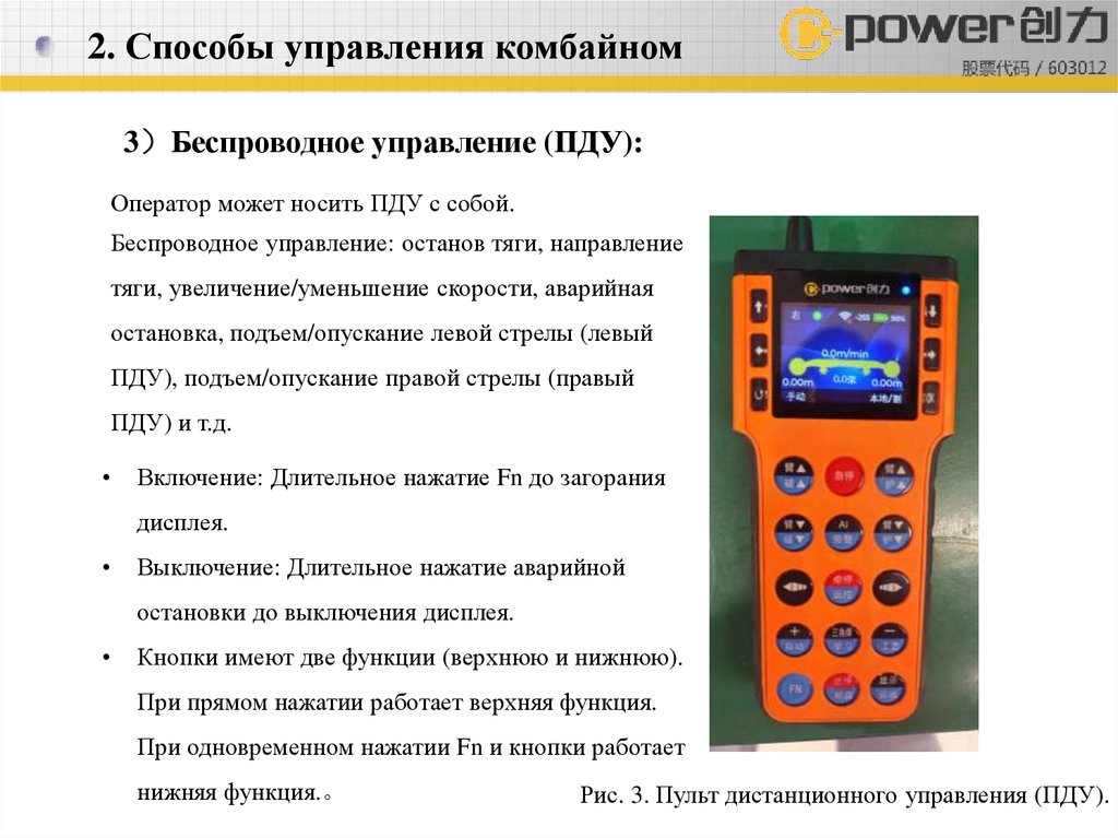 2. Способы управления комбайном3 Беспроводное управление (ПДУ):