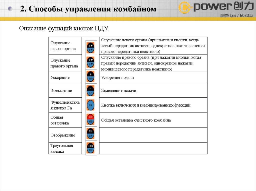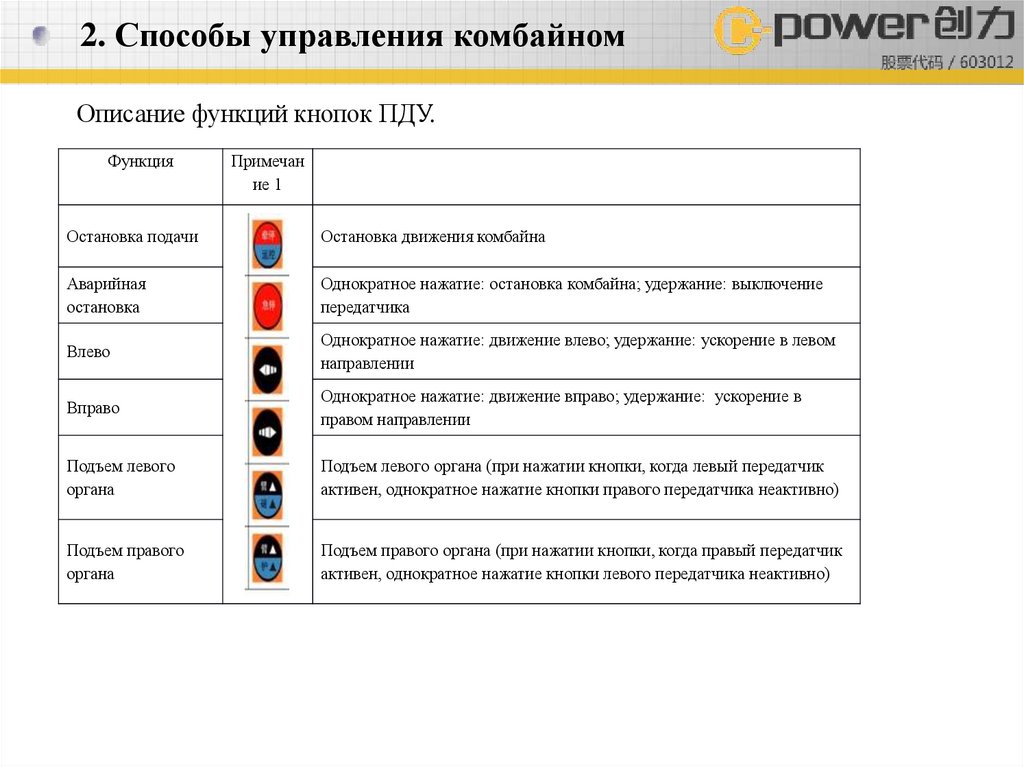 2. Способы управления комбайном1 Панельное управление:Управление с помощью кнопок на