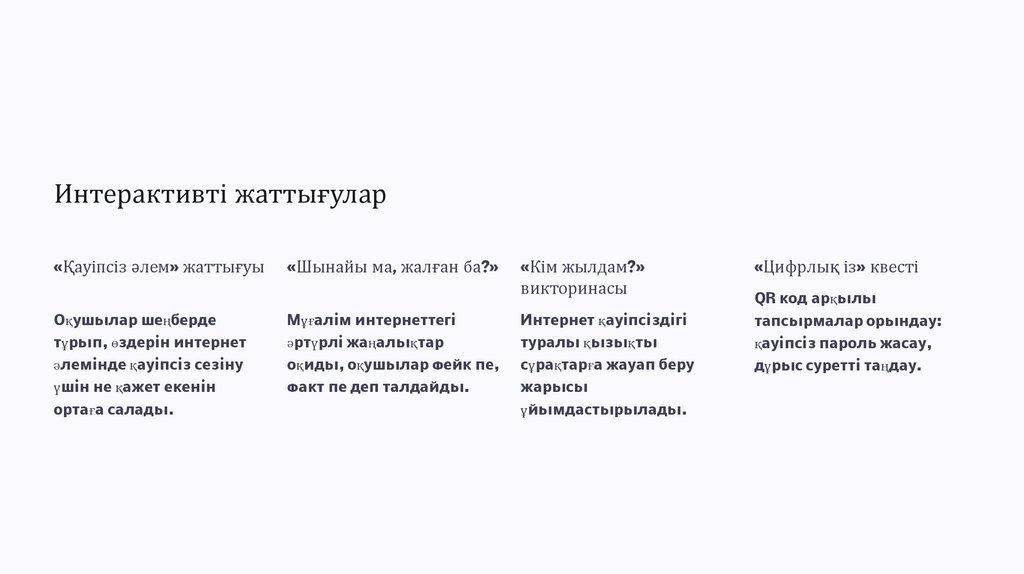 ✓ Интернетте өзімнің және басқалардың жеке мәліметтерін қорғаймын