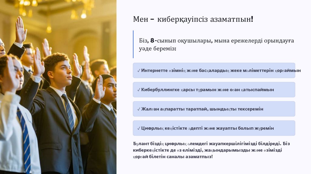 Мен – киберқауіпсіз азаматпын!Біз, 8-сынып оқушылары, мына ережелерді орындауға