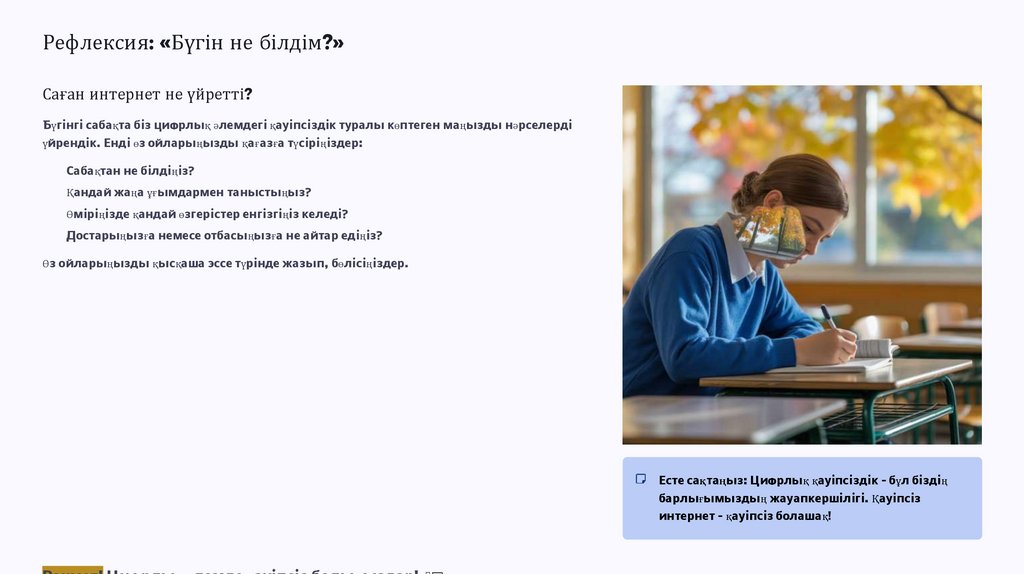 Рефлексия: «Бүгін не білдім?»Саған интернет не үйретті?