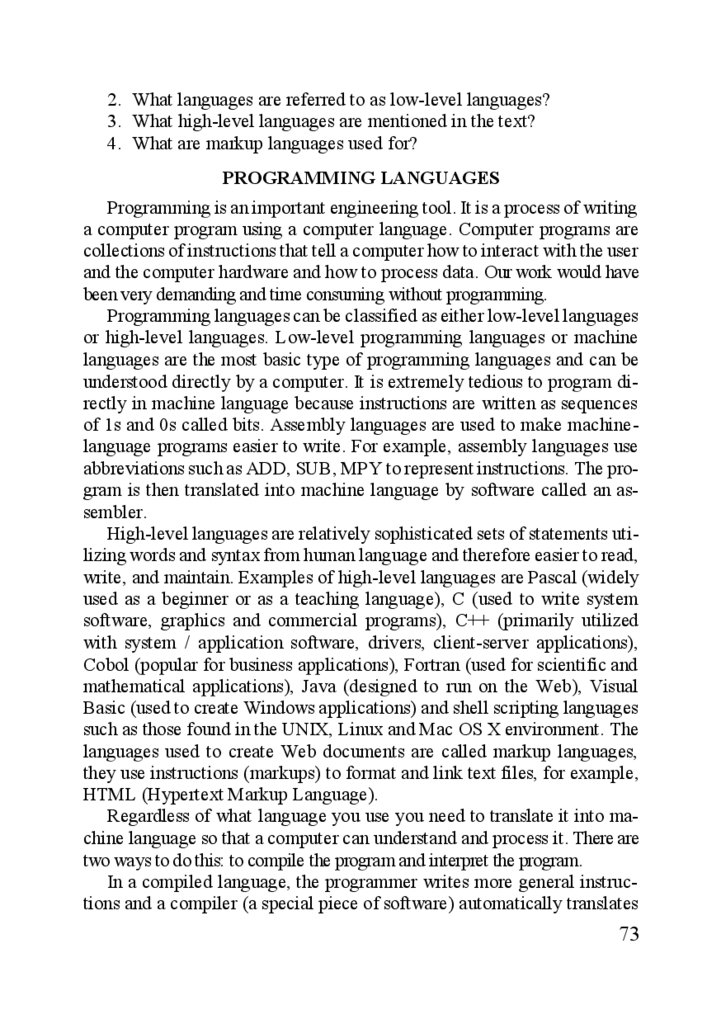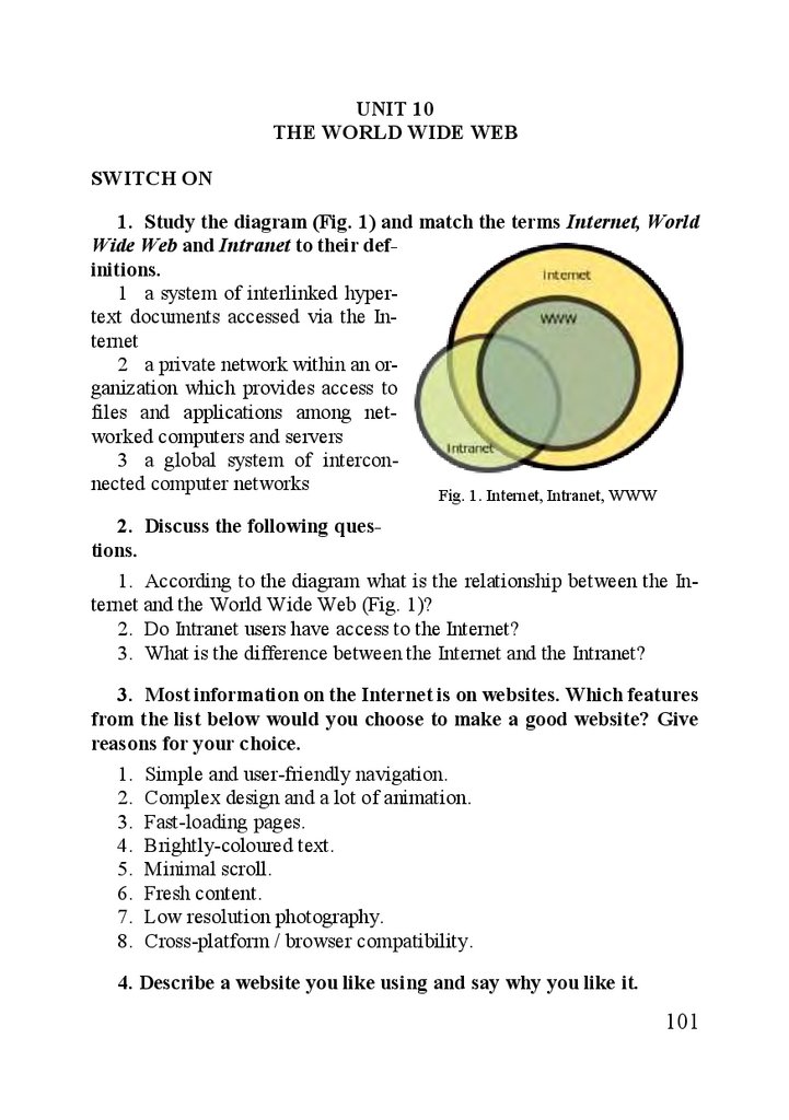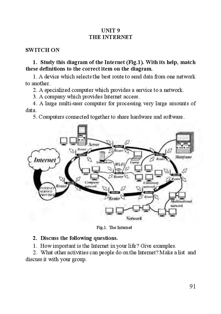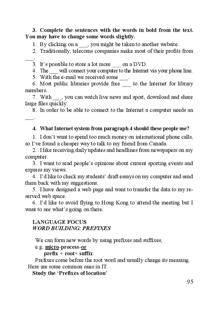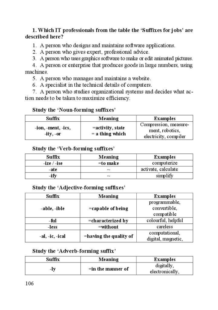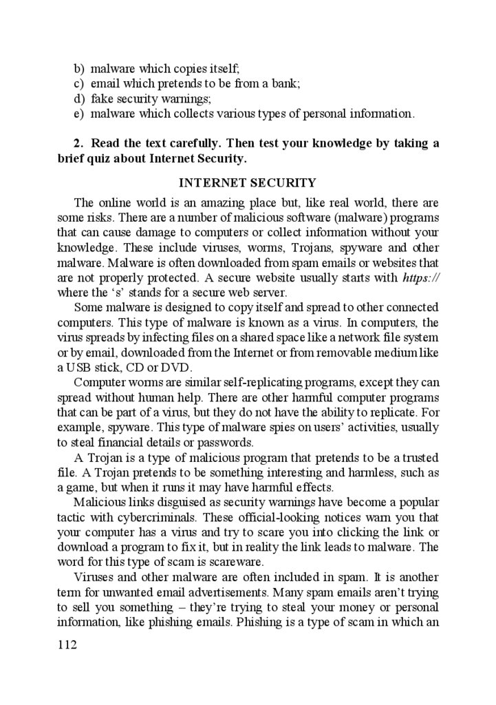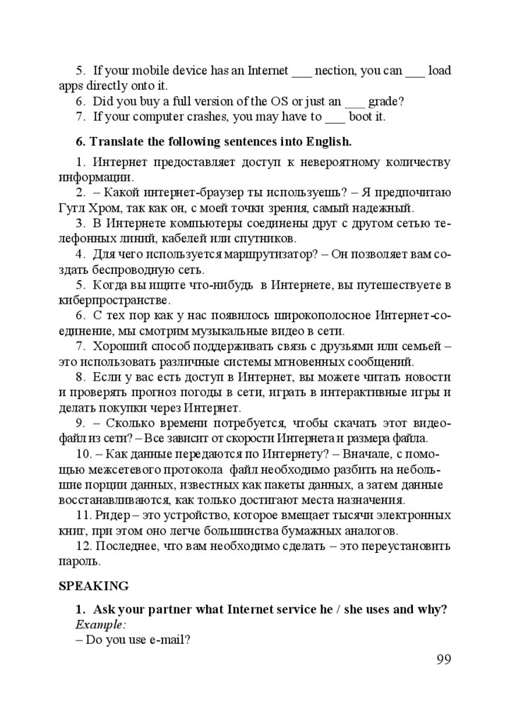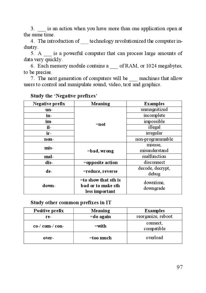 Пособие состоит из 14 разделов, охватывающих основные тематические области, относящиеся к сфере компьютерной техники и информационных технологий. Каждый раздел имеет единую структуру, включающую следующие ключевые элементы: Switch on (введение в тему в виде проблемных вопросов), Vocabulary (лексические