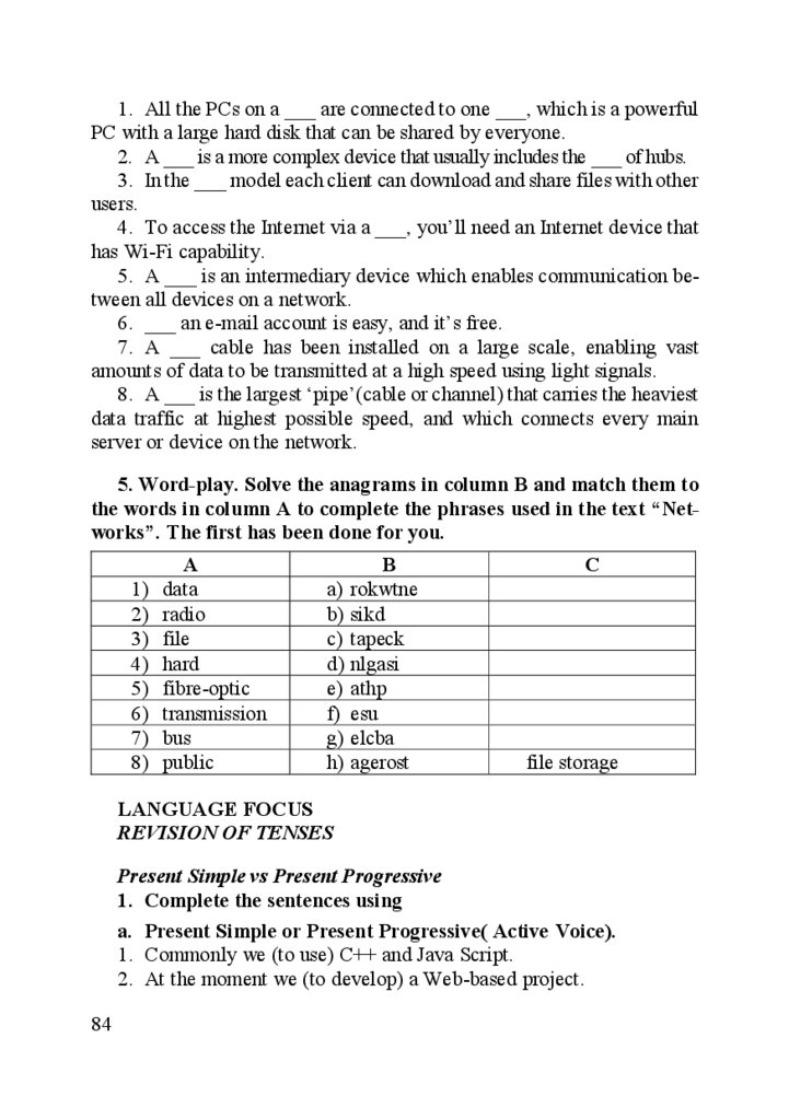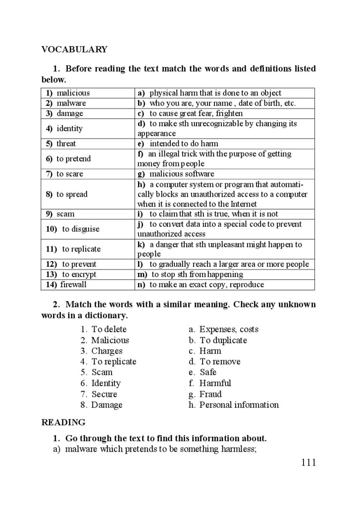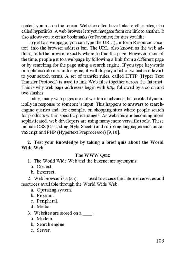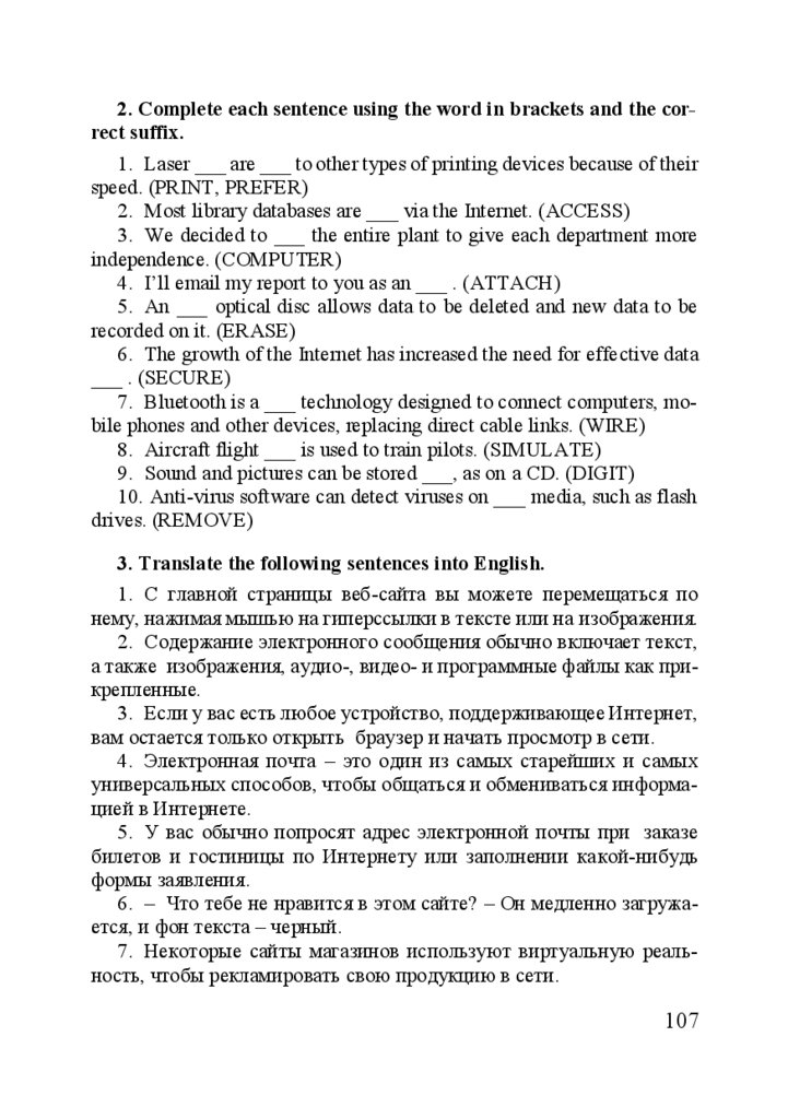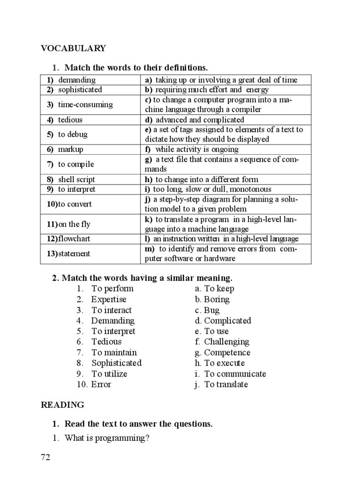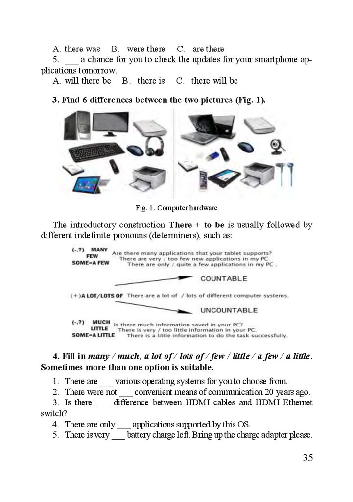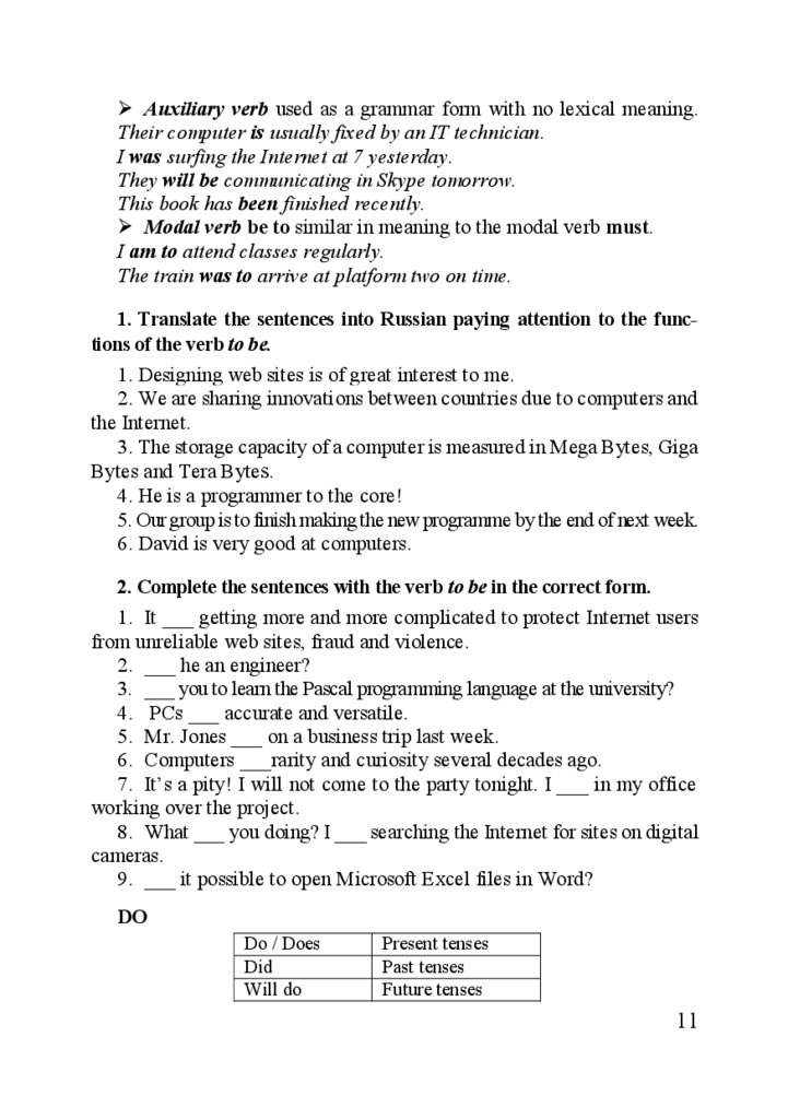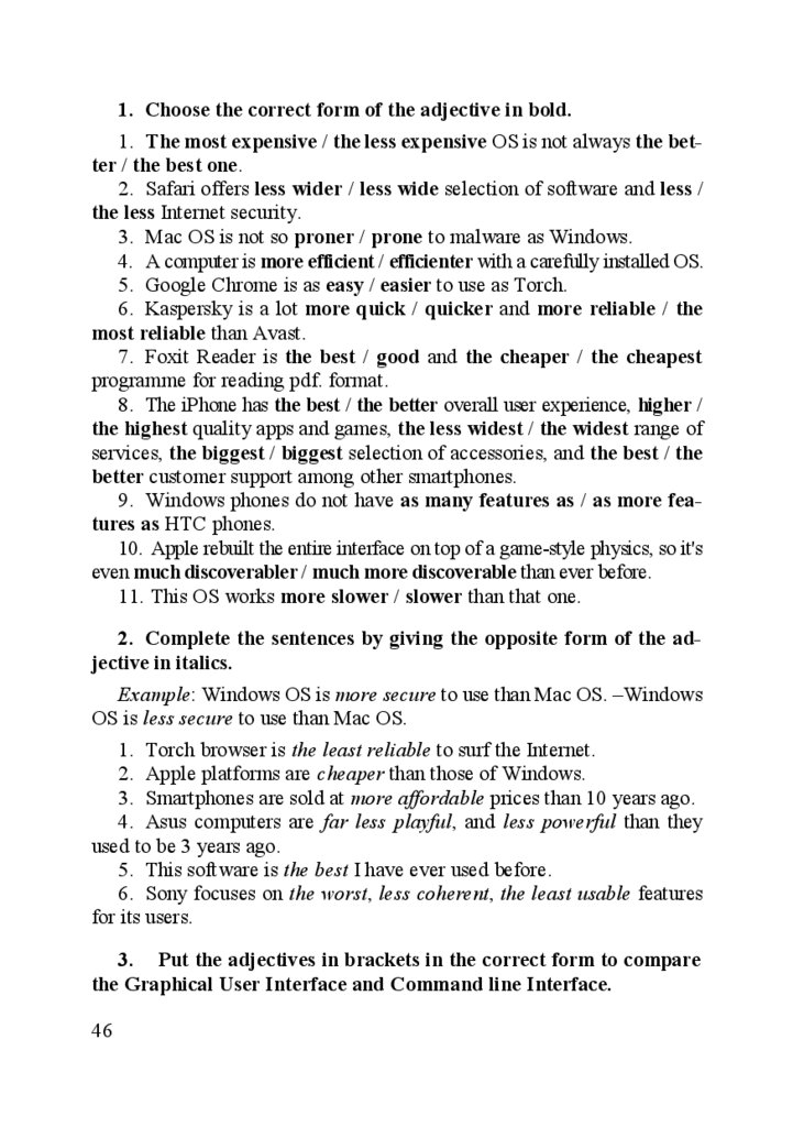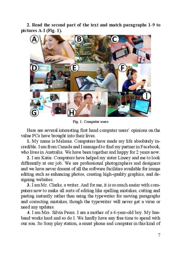 Пособие состоит из 14 разделов, охватывающих основные тематические области, относящиеся к сфере компьютерной техники и информационных технологий. Каждый раздел имеет единую структуру, включающую следующие ключевые элементы: Switch on (введение в тему в виде проблемных вопросов), Vocabulary (лексические