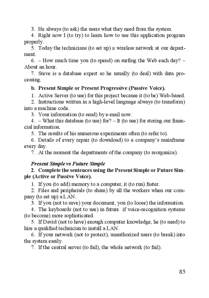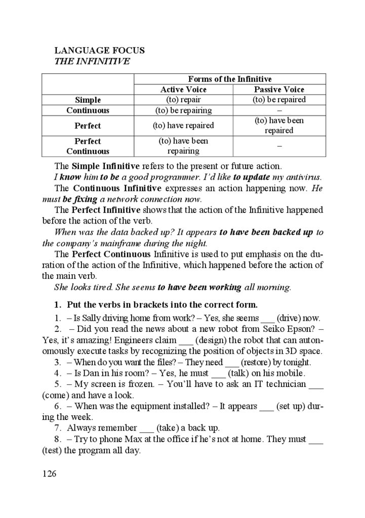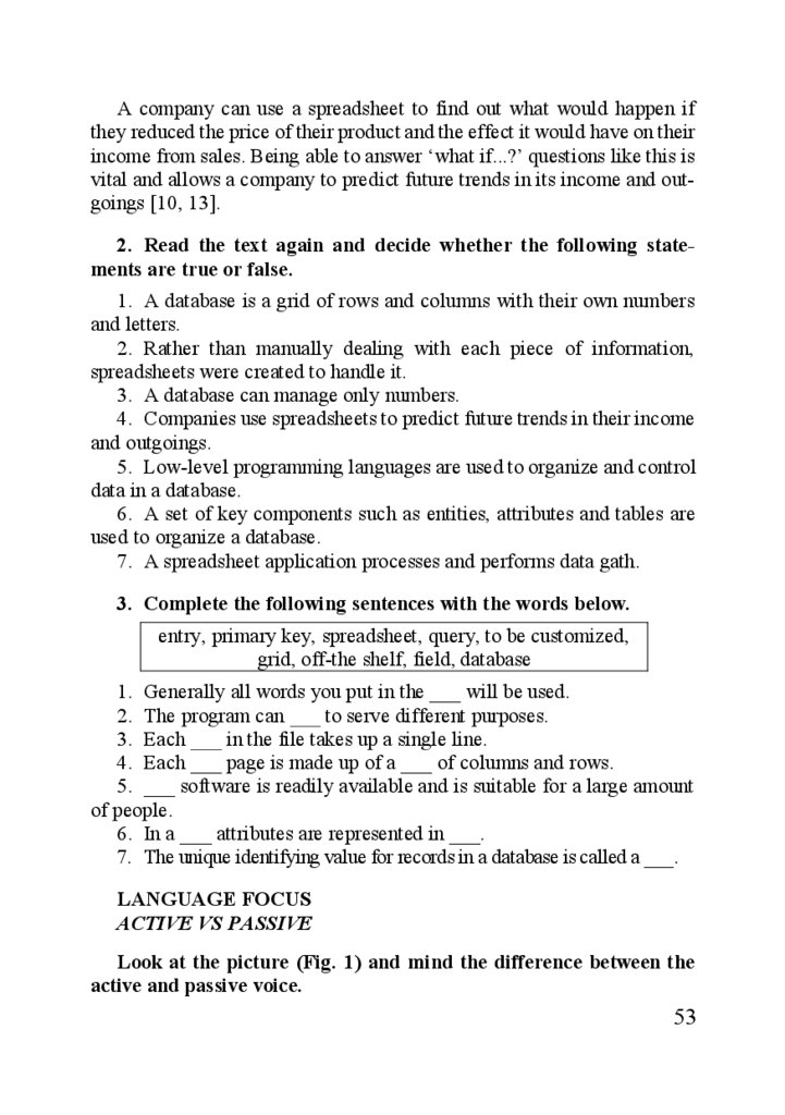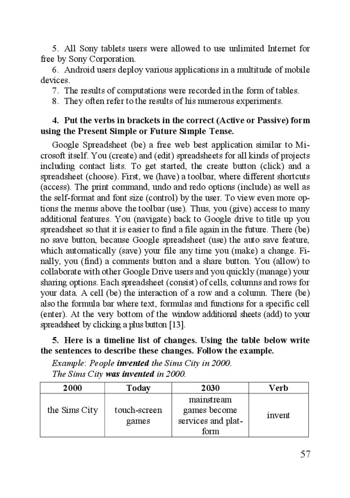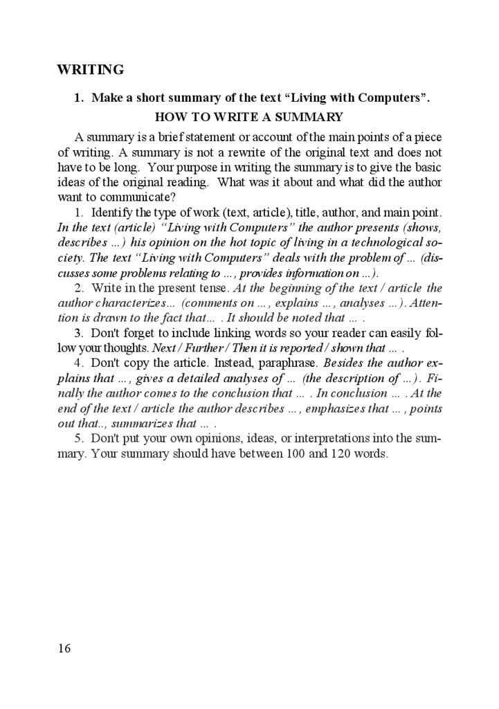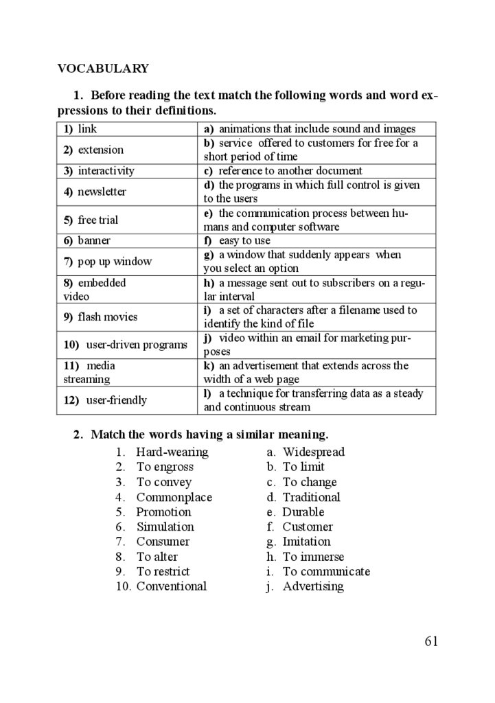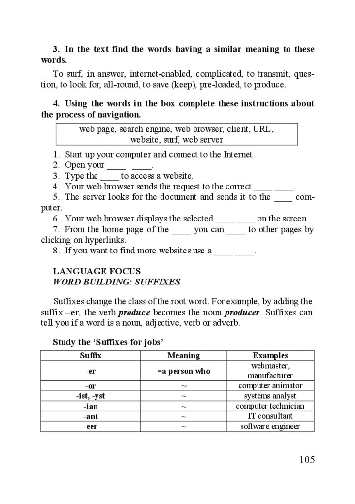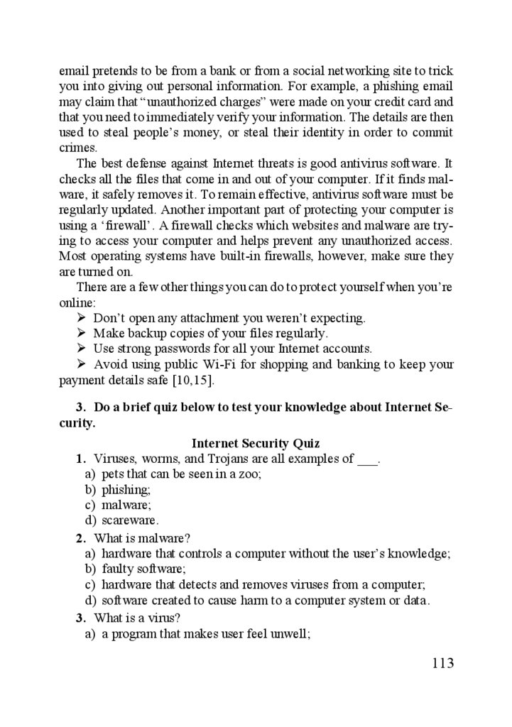 Пособие состоит из 14 разделов, охватывающих основные тематические области, относящиеся к сфере компьютерной техники и информационных технологий. Каждый раздел имеет единую структуру, включающую следующие ключевые элементы: Switch on (введение в тему в виде проблемных вопросов), Vocabulary (лексические